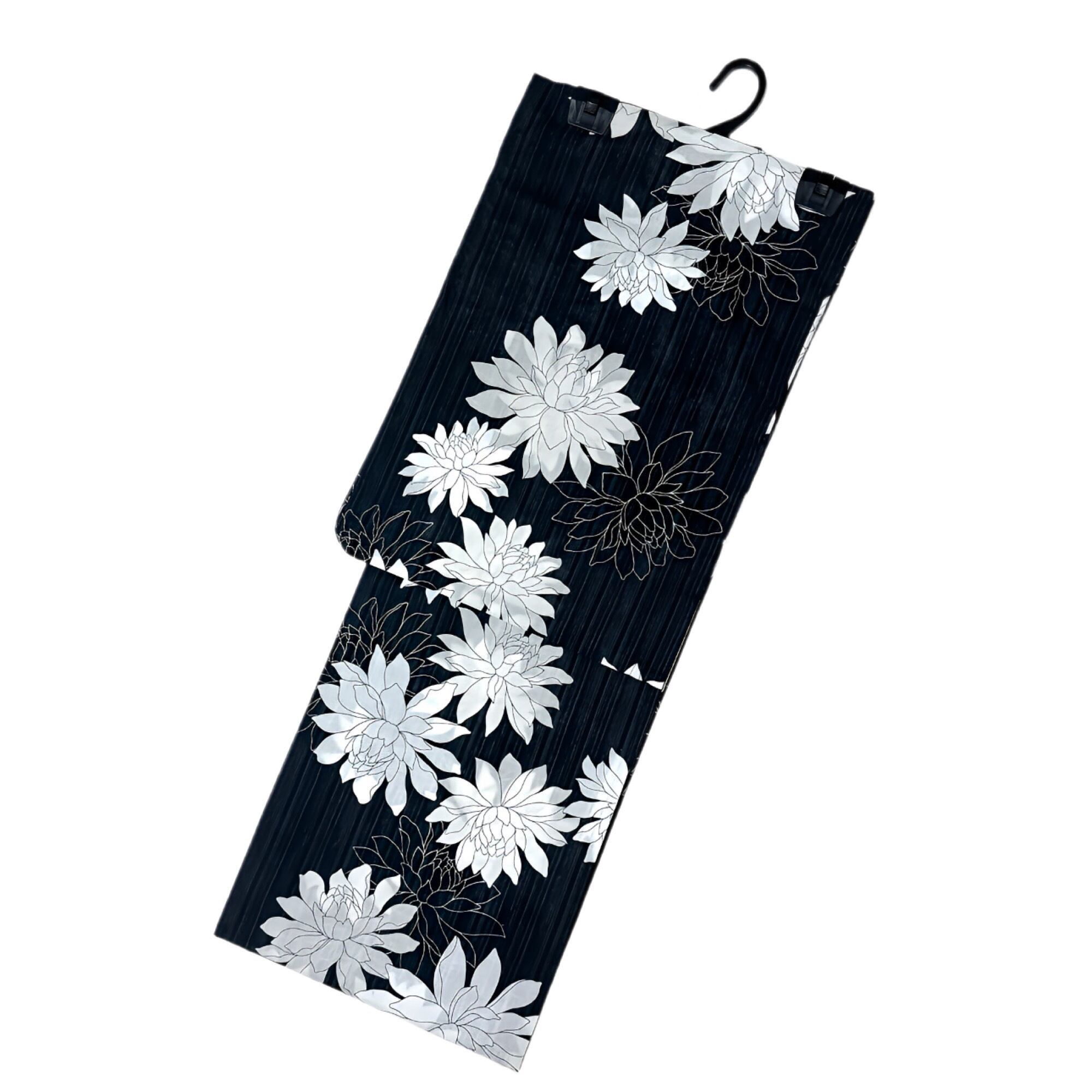 浴衣ジェンヌ 浴衣5点セット 黒地 ブラック 花柄 綿 ゆかた 半幅帯 浴衣 下駄 レディース浴衣