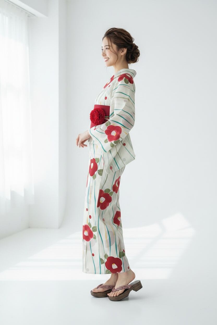 浴衣・半幅帯・下駄・帯締め・コサージュ