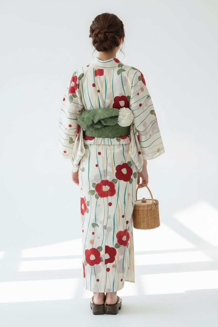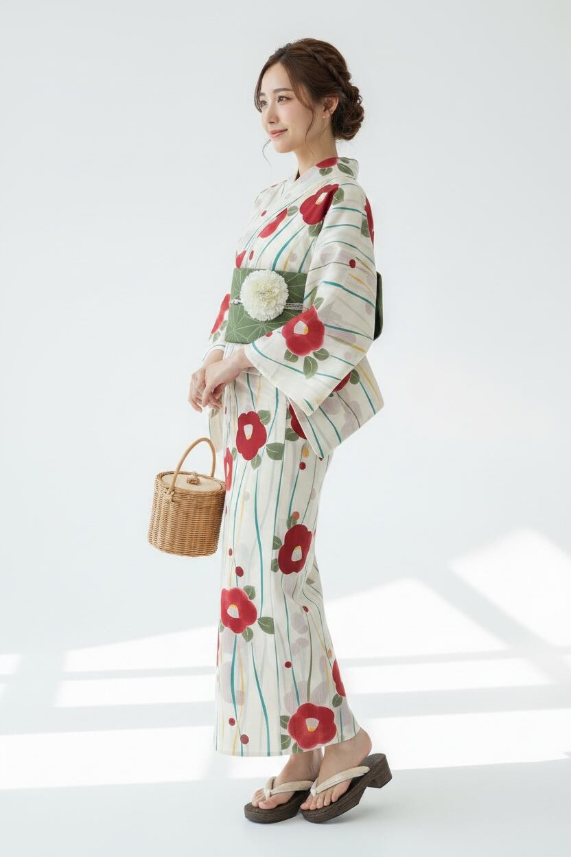 浴衣・半幅帯・下駄・帯締め・コサージュ