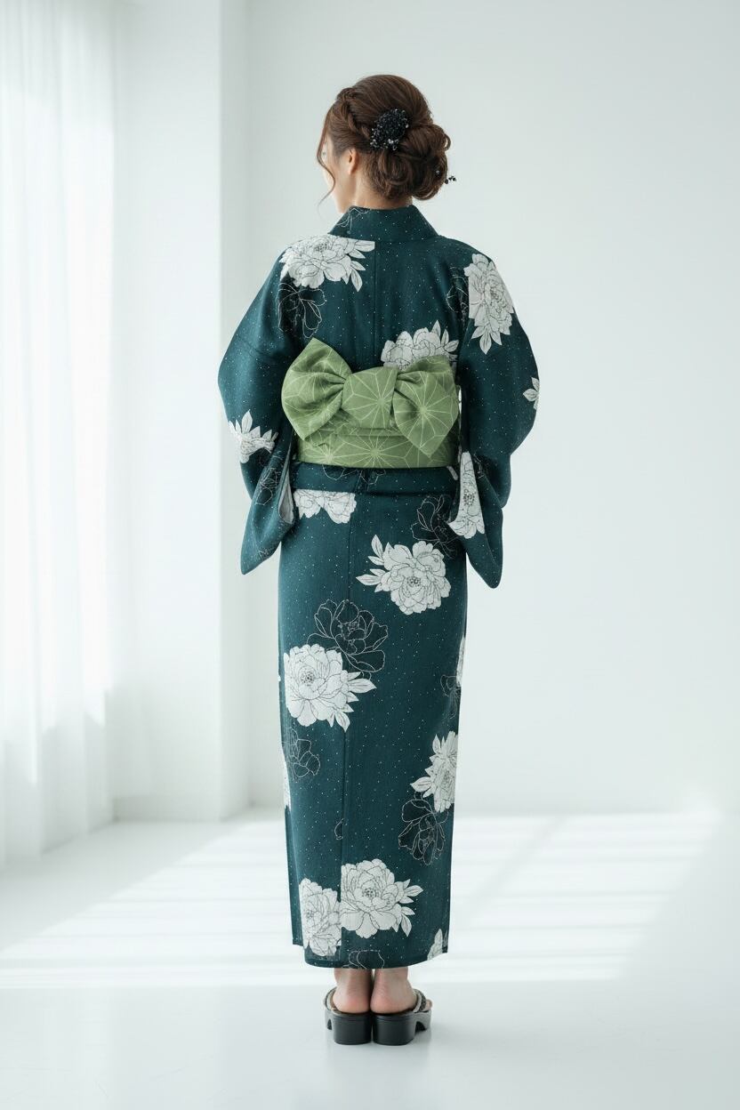 ○浴衣の柄の出方は裁断箇所や縫製により1枚1枚異なります。その為モデル着用のものと柄や色の出方が画像と異なる場合がございますので予めご了承くださいませ。