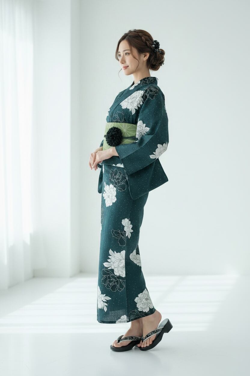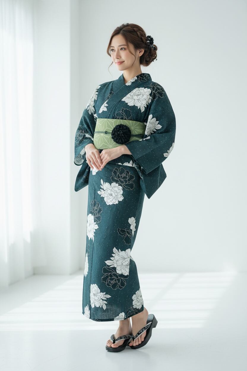 浴衣・半幅帯・下駄・帯締め・コサージュ