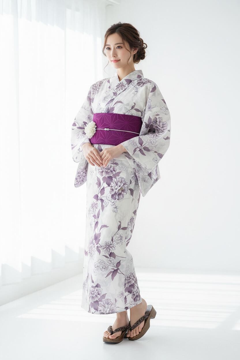 浴衣・半幅帯・下駄・帯締め・コサージュ