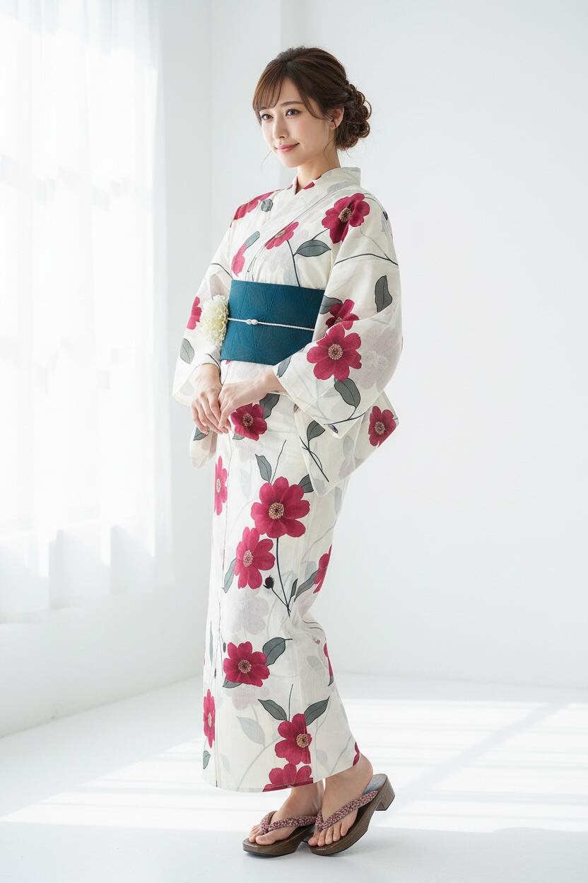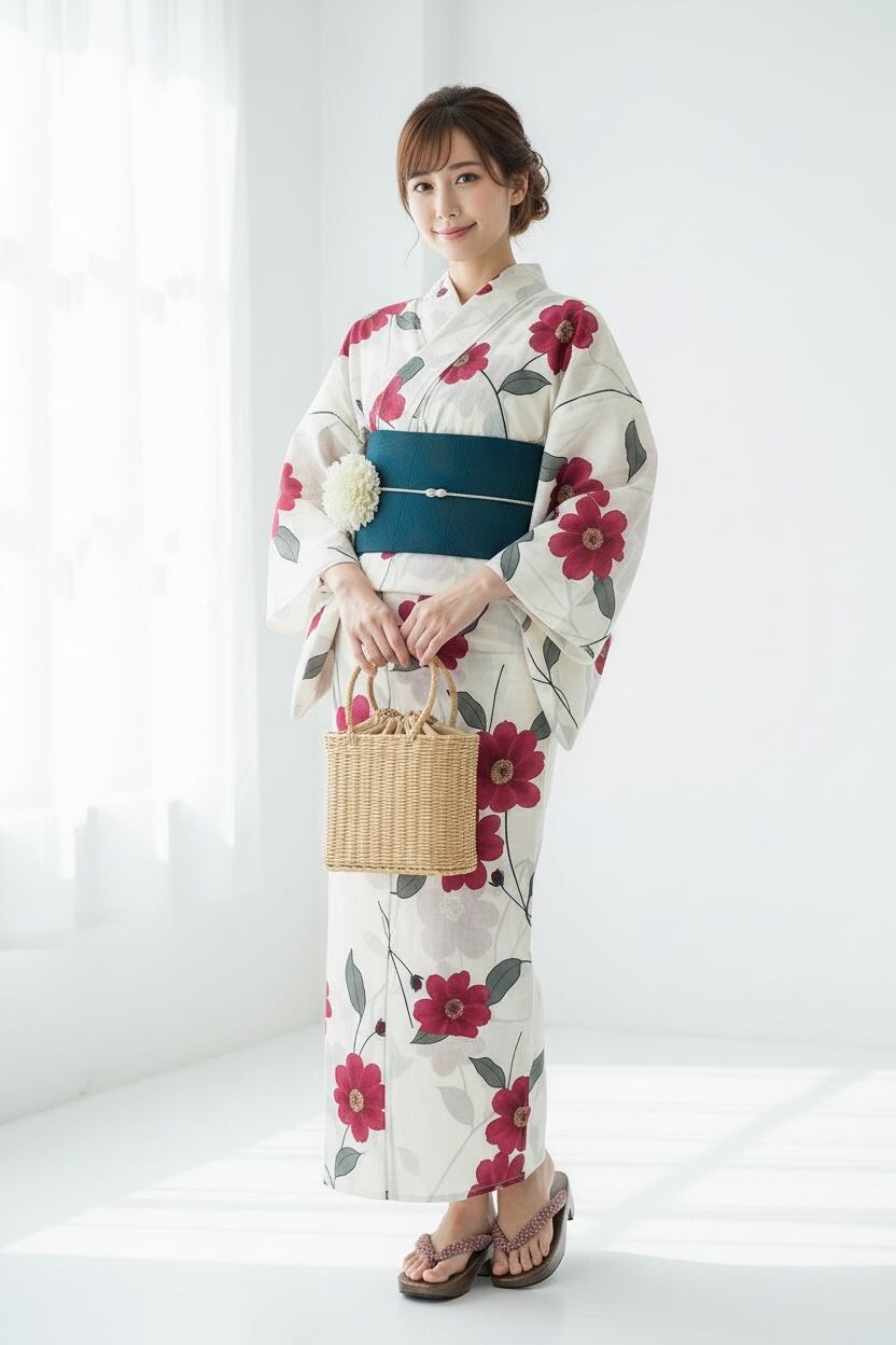 浴衣・半幅帯・下駄・帯締め・コサージュ