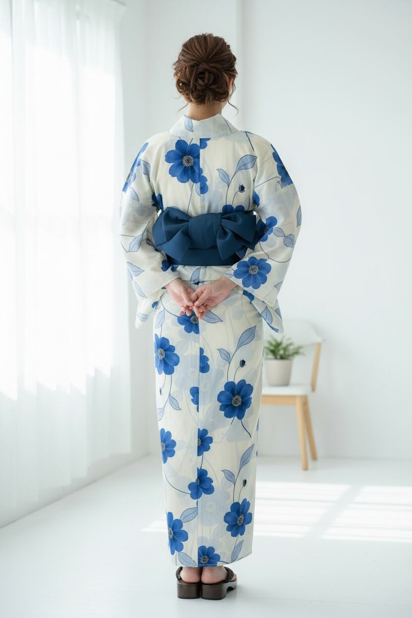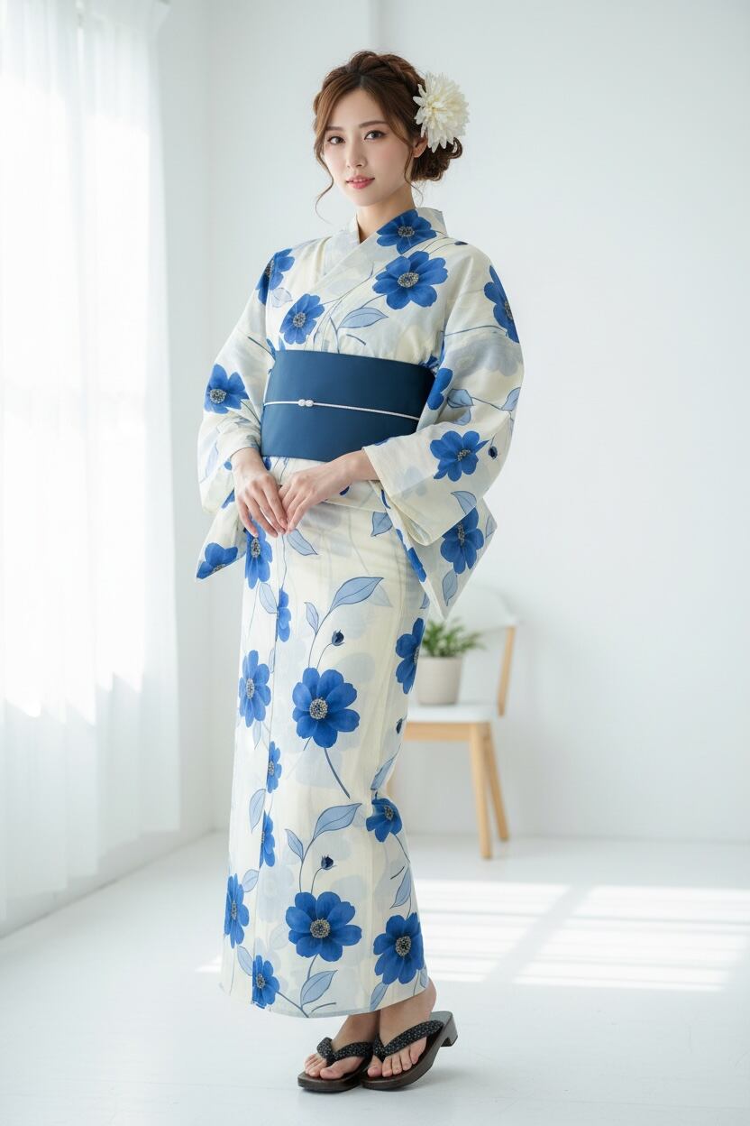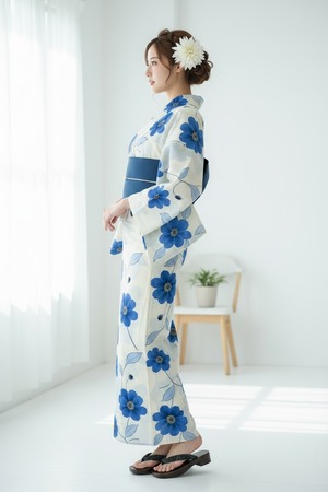 浴衣・半幅帯・下駄・帯締め・コサージュ