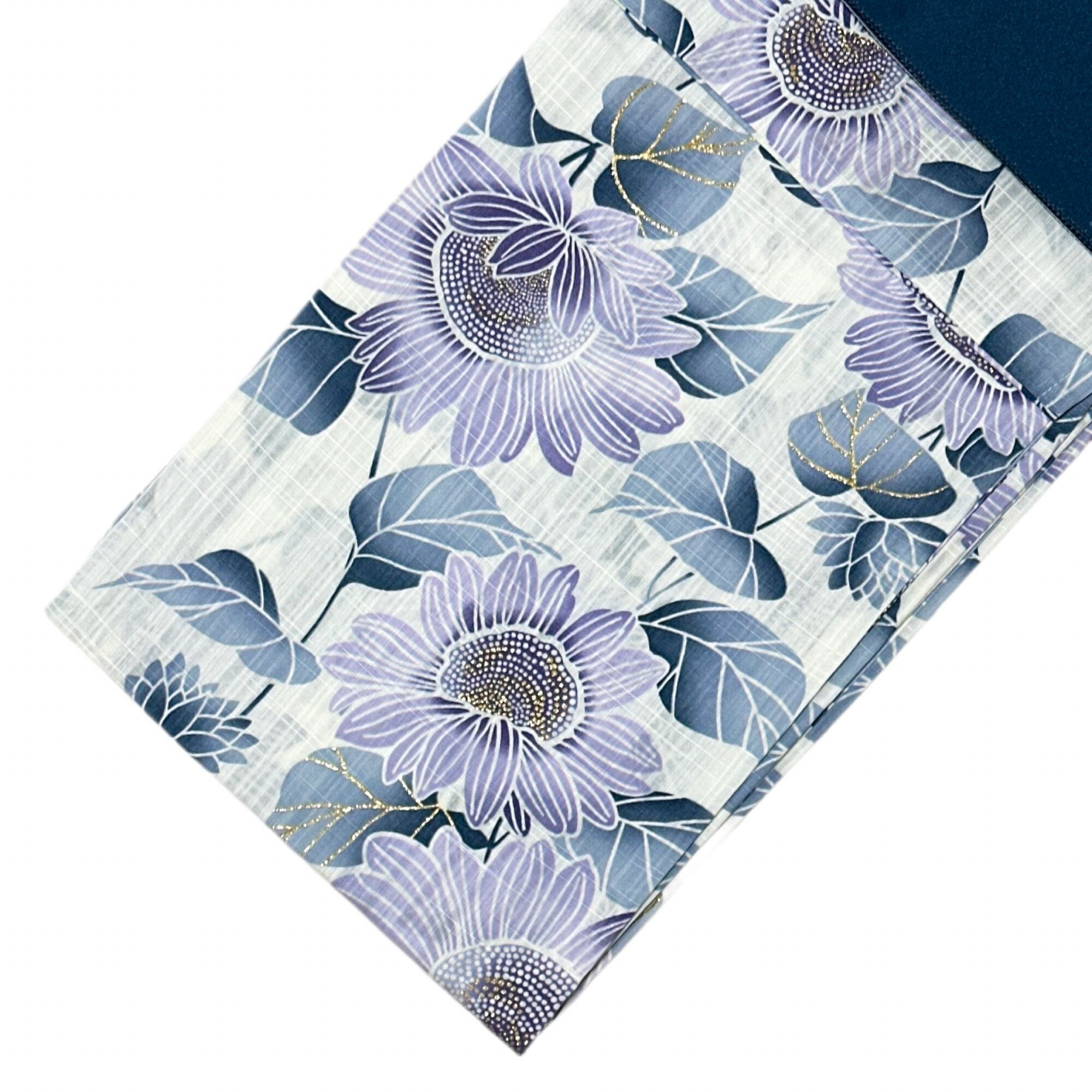 浴衣ジェンヌ 浴衣5点セット 白地 紫 ひまわり 向日葵 綿 ゆかた 半幅帯 浴衣
