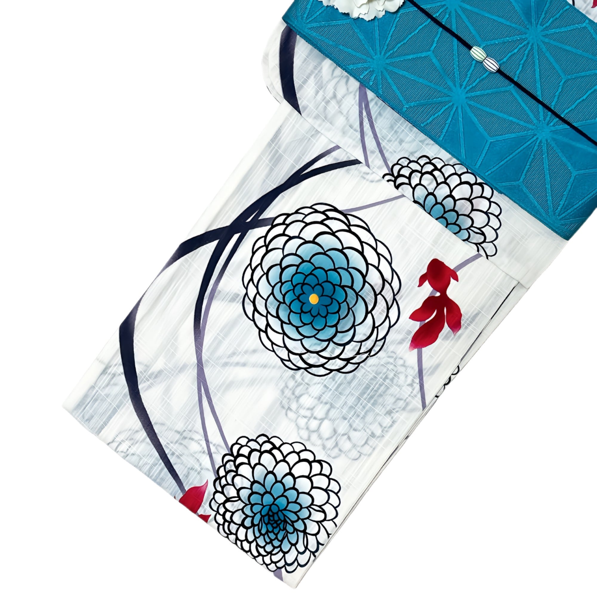 浴衣ジェンヌ 浴衣5点セット 白地 金魚 ダリア 綿 ゆかた 半幅帯 浴衣