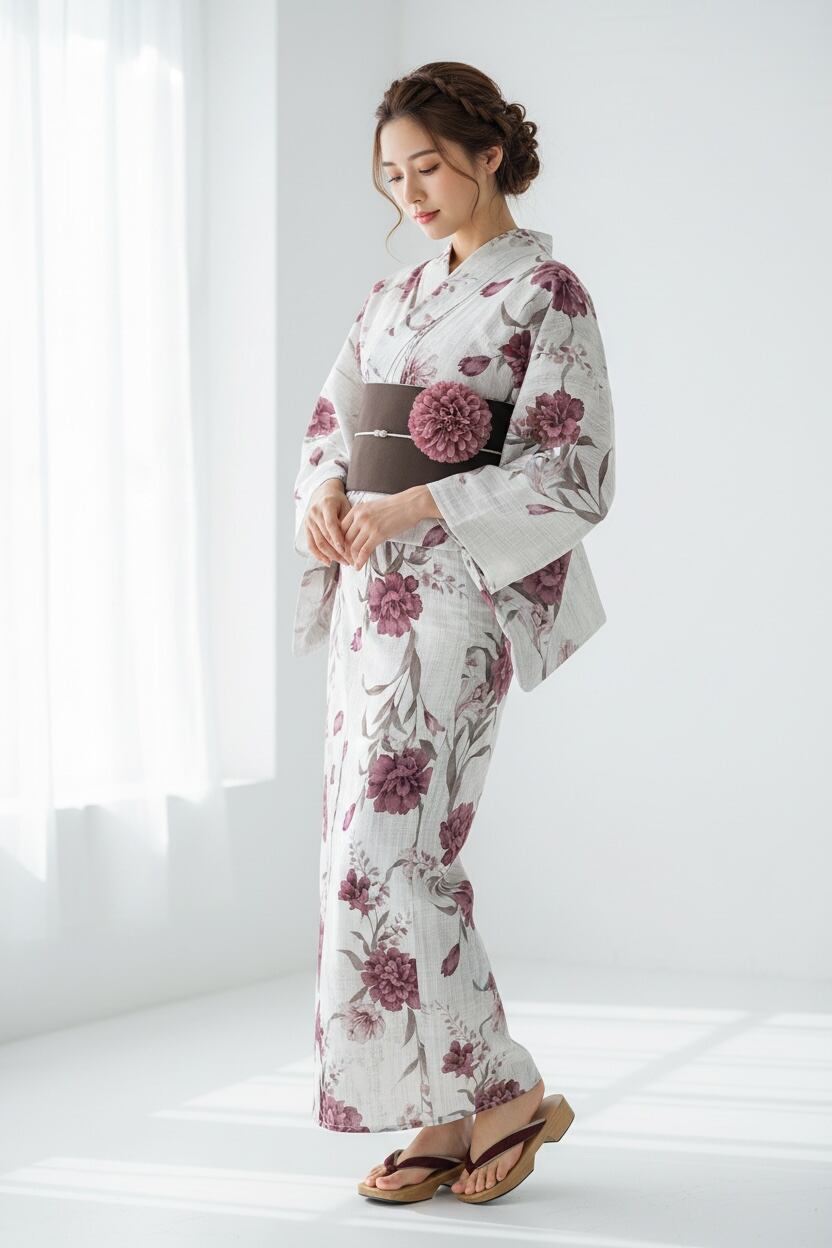 浴衣・半幅帯・下駄・帯締め・コサージュ