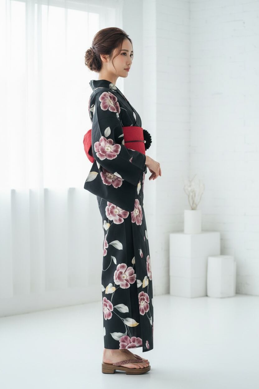 浴衣の地のお色は黒になります。