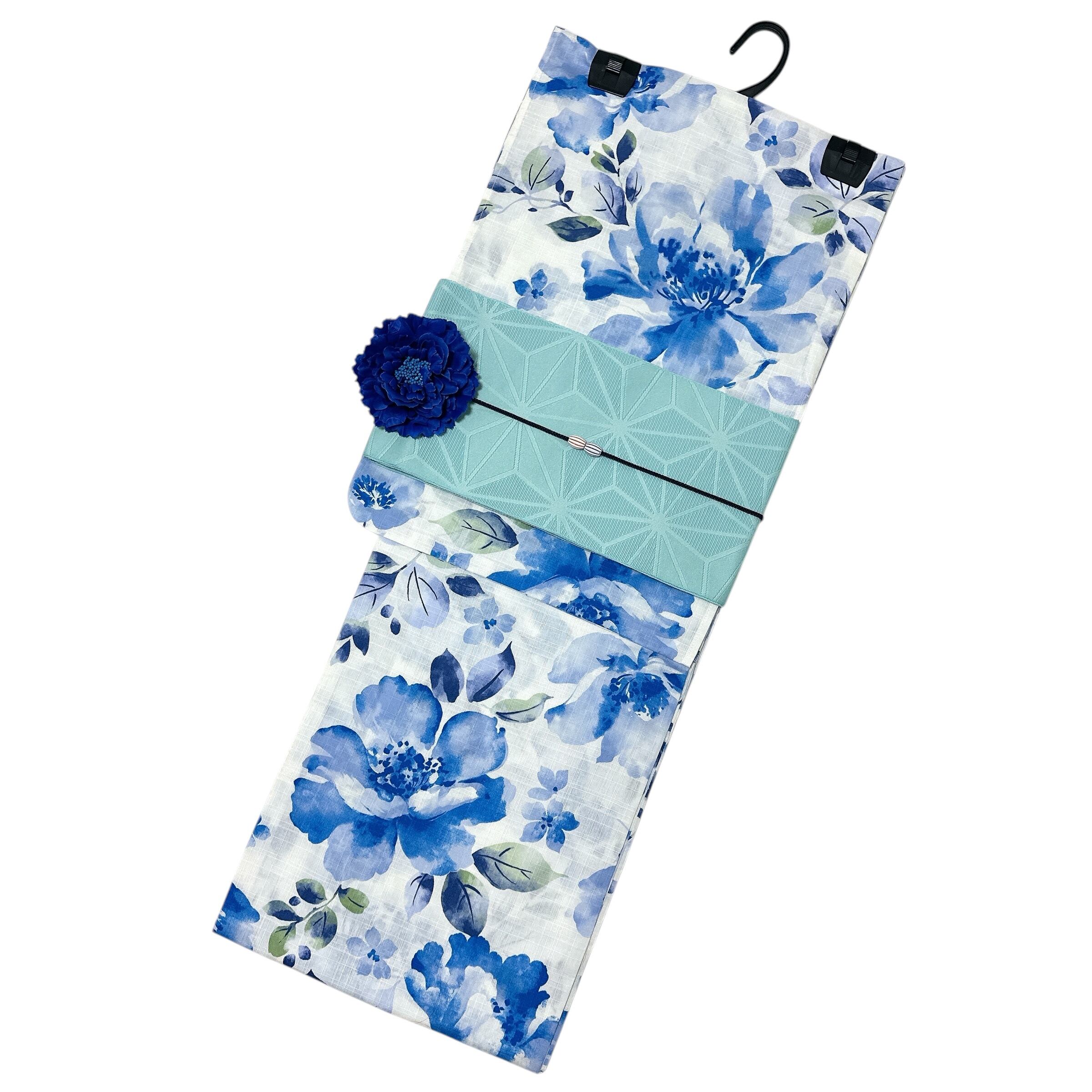 浴衣ジェンヌ 浴衣5点セット 綿 ゆかた 半幅帯 浴衣 白 青 ブルー