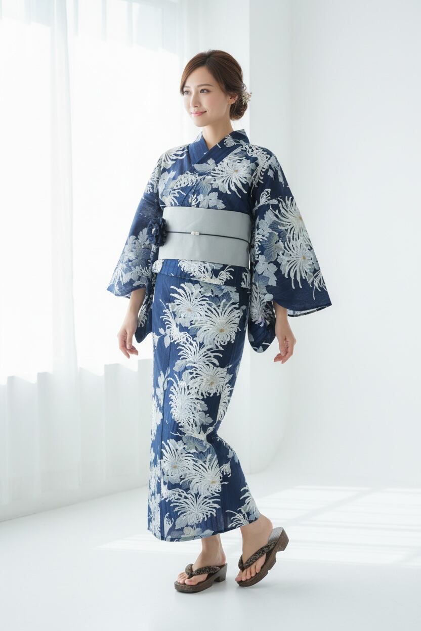浴衣・半幅帯・下駄・帯締め・コサージュ