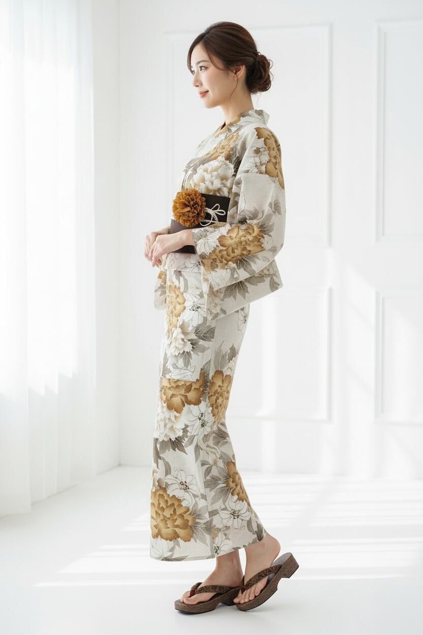 浴衣・半幅帯・下駄・帯締め・コサージュ