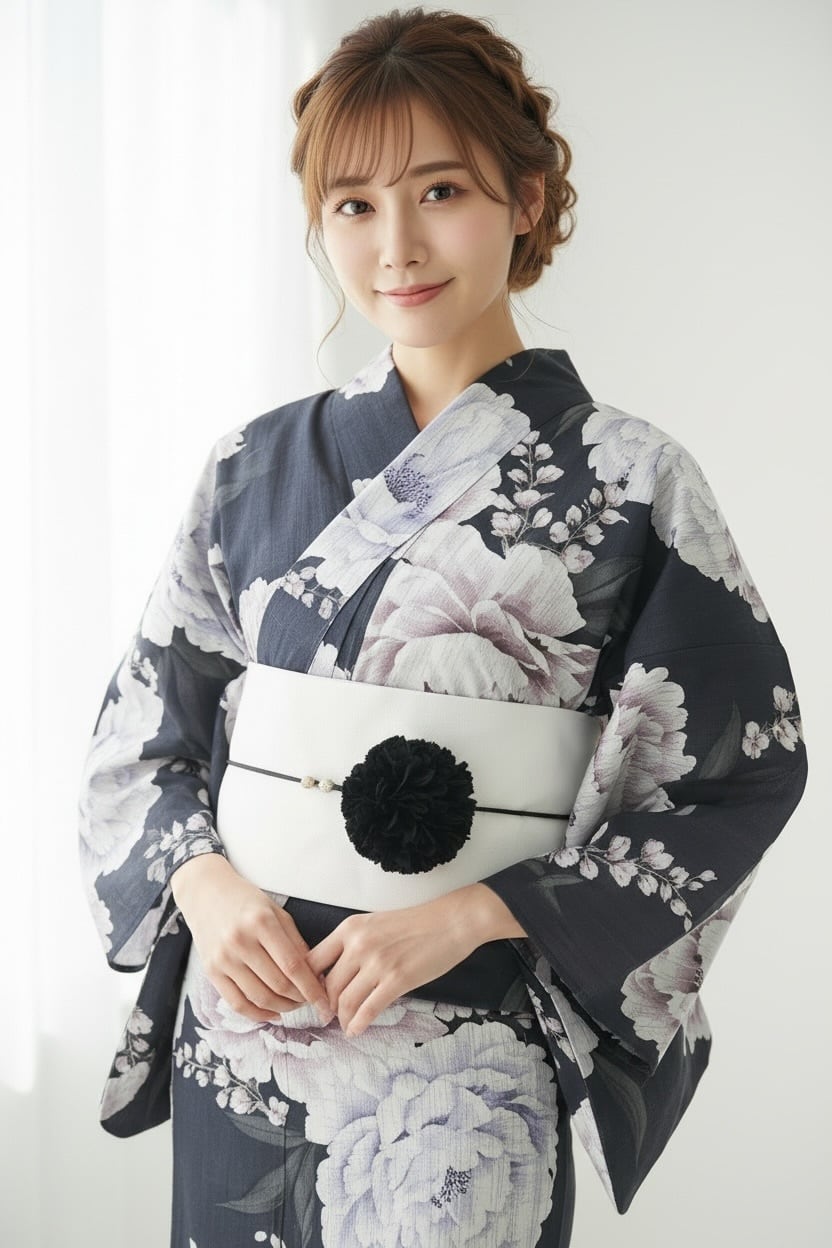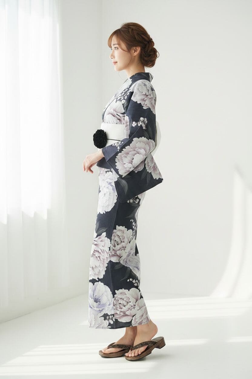 ○浴衣の柄の出方は裁断箇所や縫製により1枚1枚異なります。その為モデル着用のものと柄や色の出方が画像と異なる場合がございますので予めご了承くださいませ。