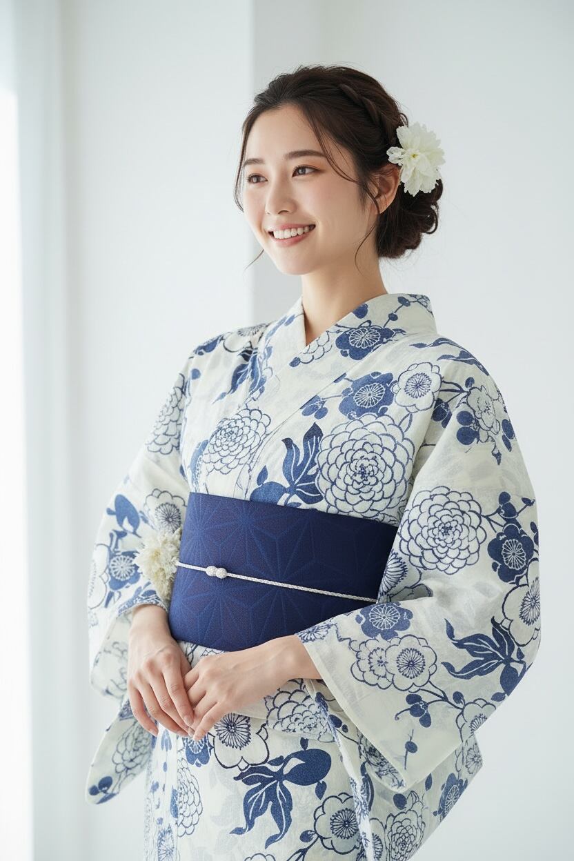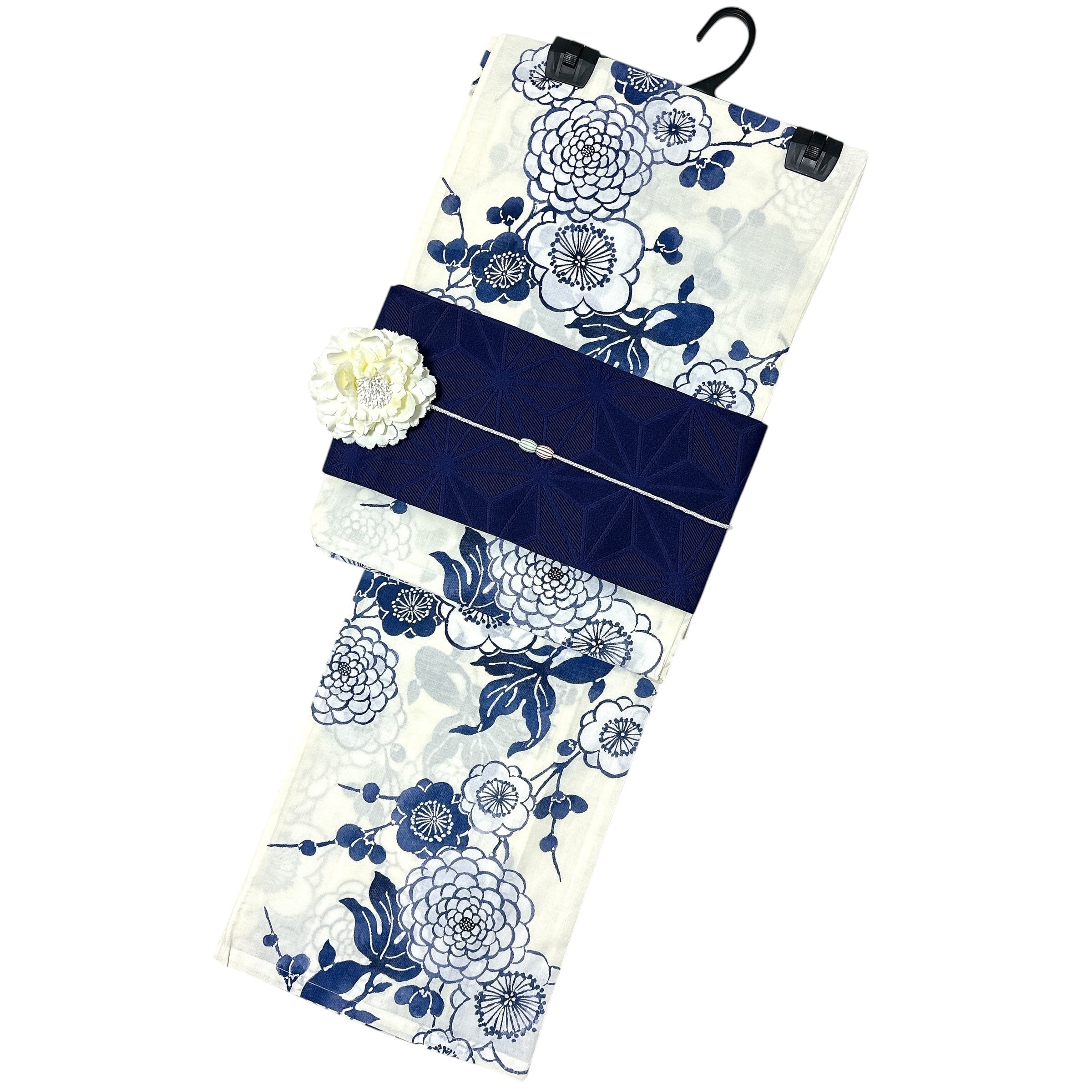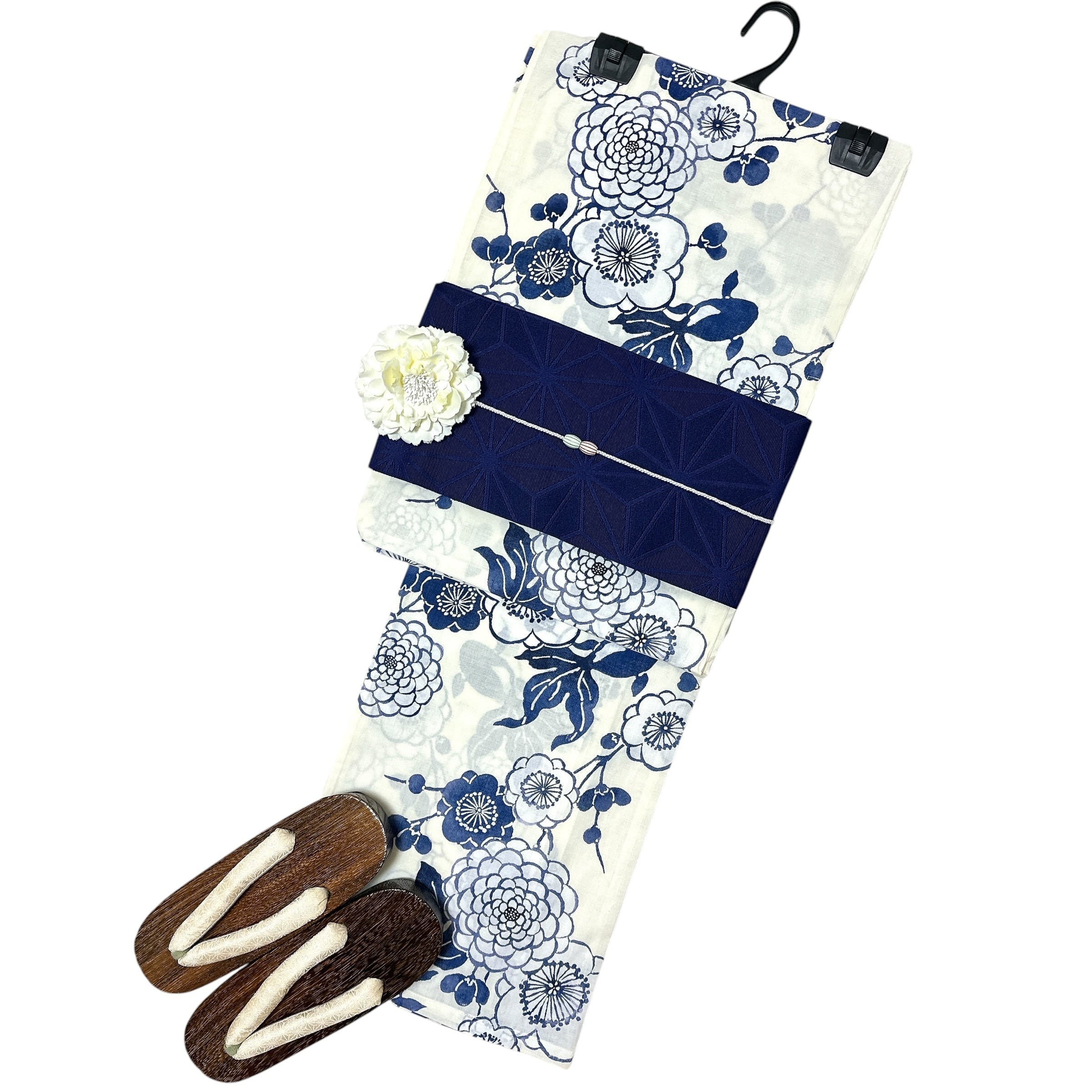 浴衣・半幅帯・下駄・帯締め・コサージュの5点セット