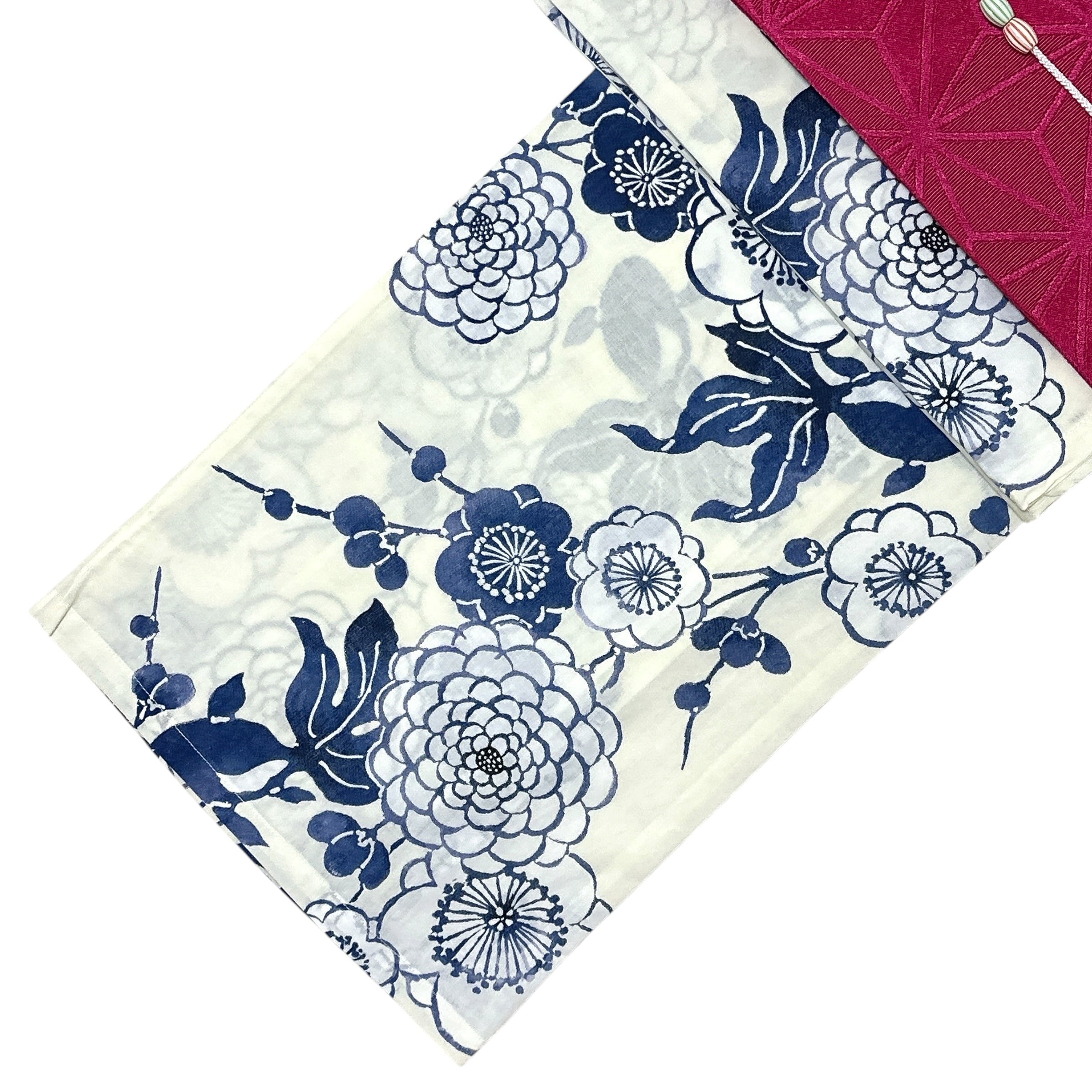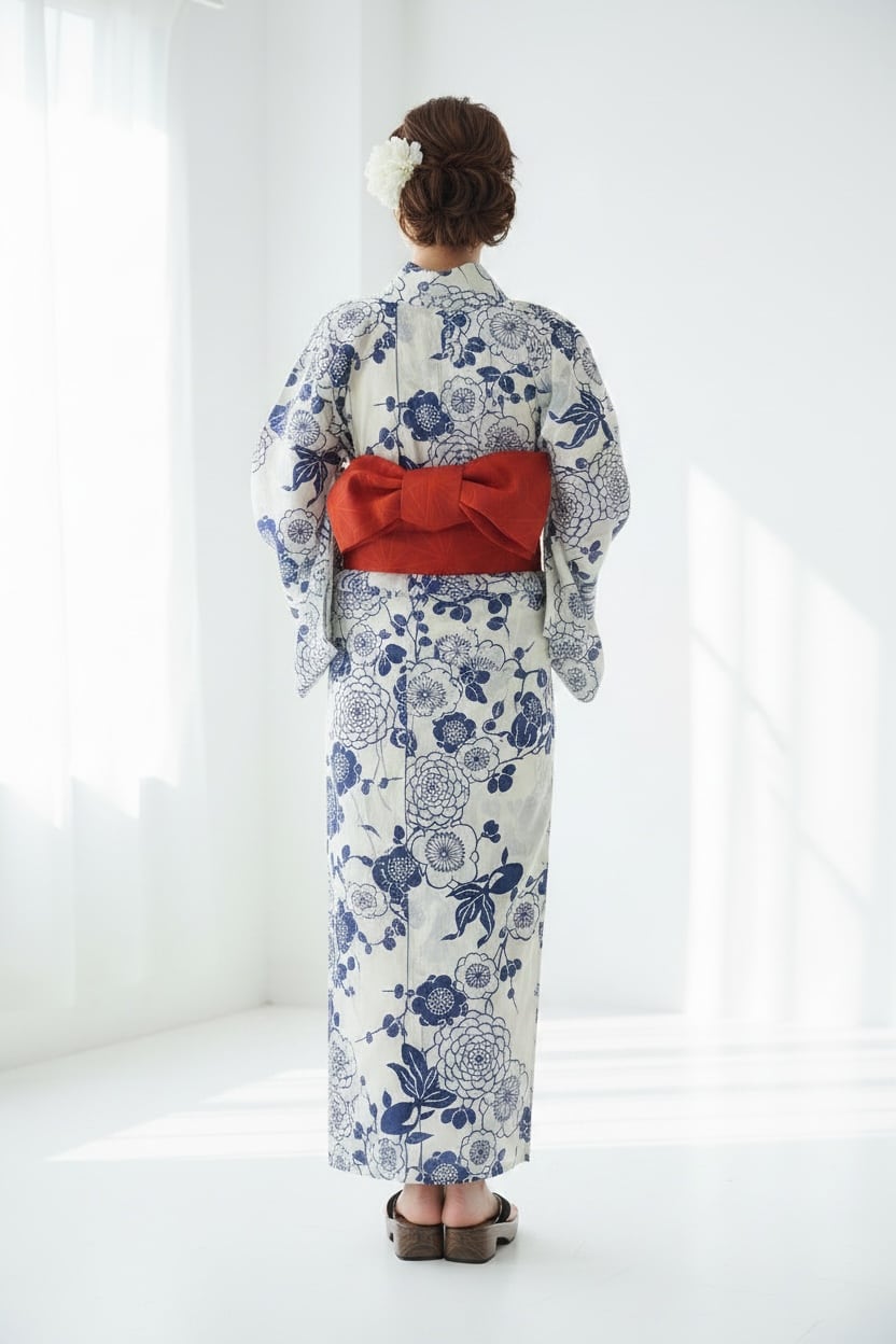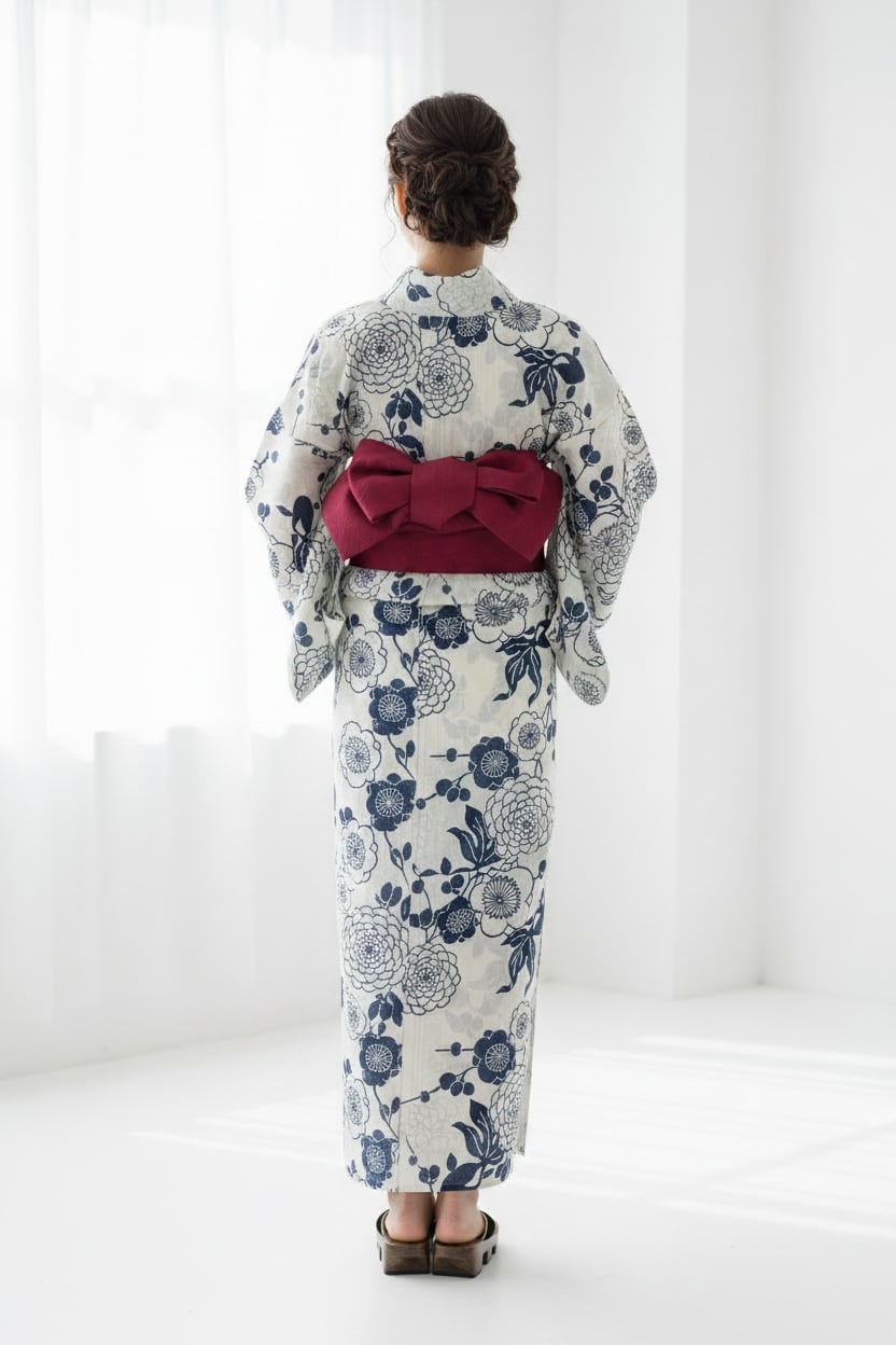 ○浴衣の柄の出方は裁断箇所や縫製により1枚1枚異なります。その為モデル着用のものと柄や色の出方が画像と異なる場合がございますので予めご了承くださいませ。