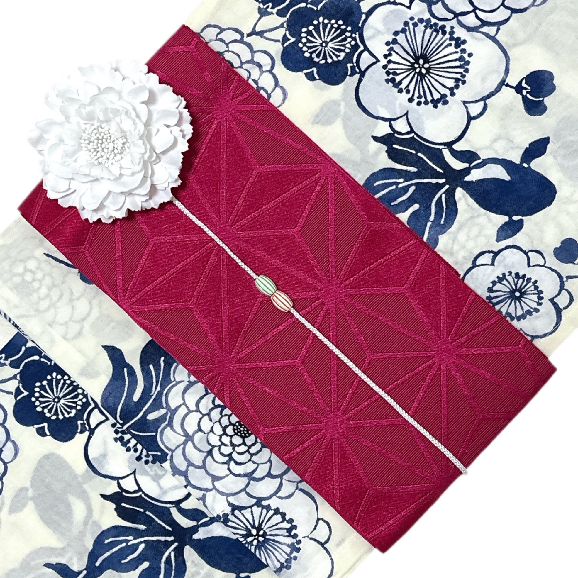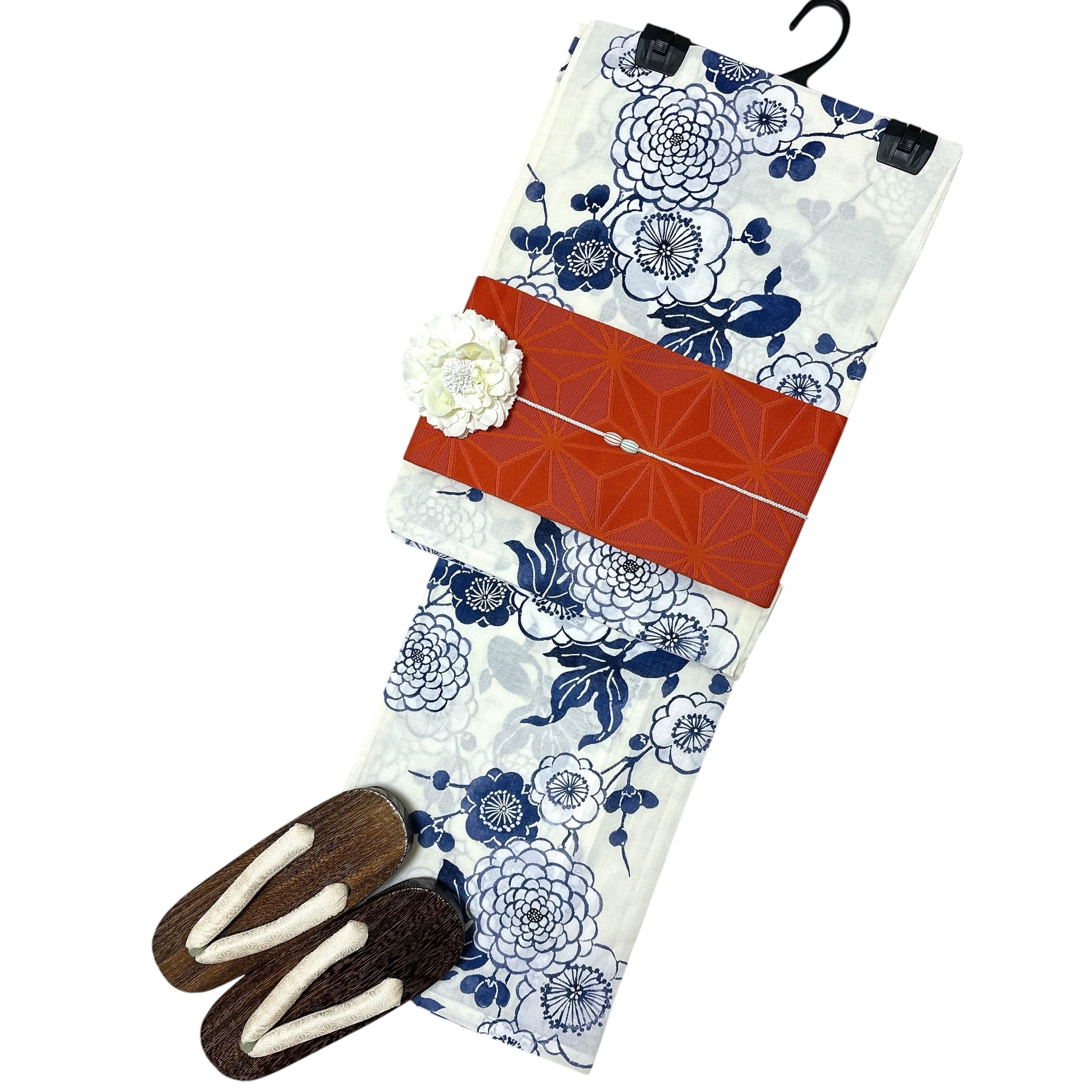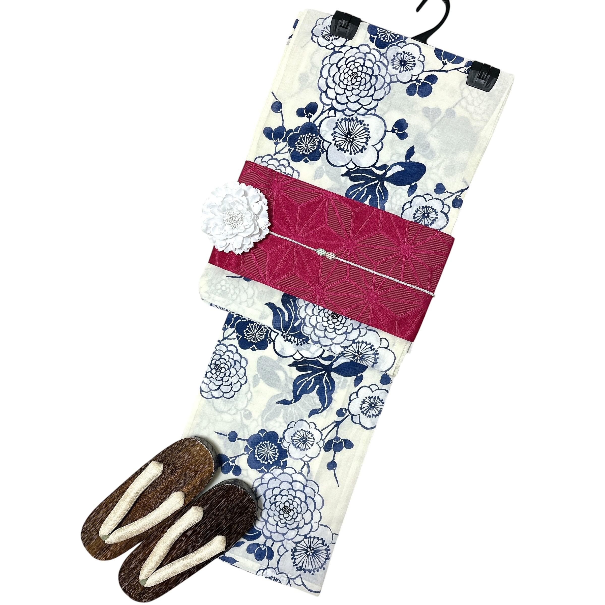 浴衣・半幅帯・下駄・帯締め・コサージュの5点セット