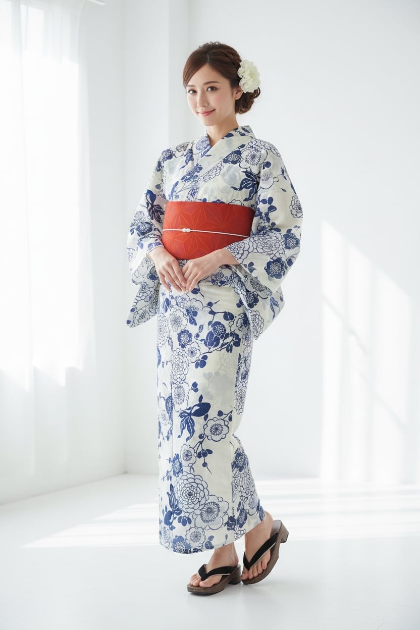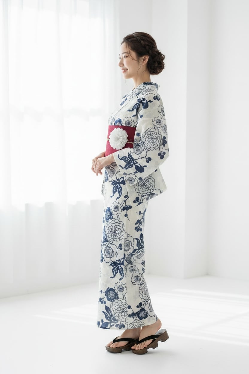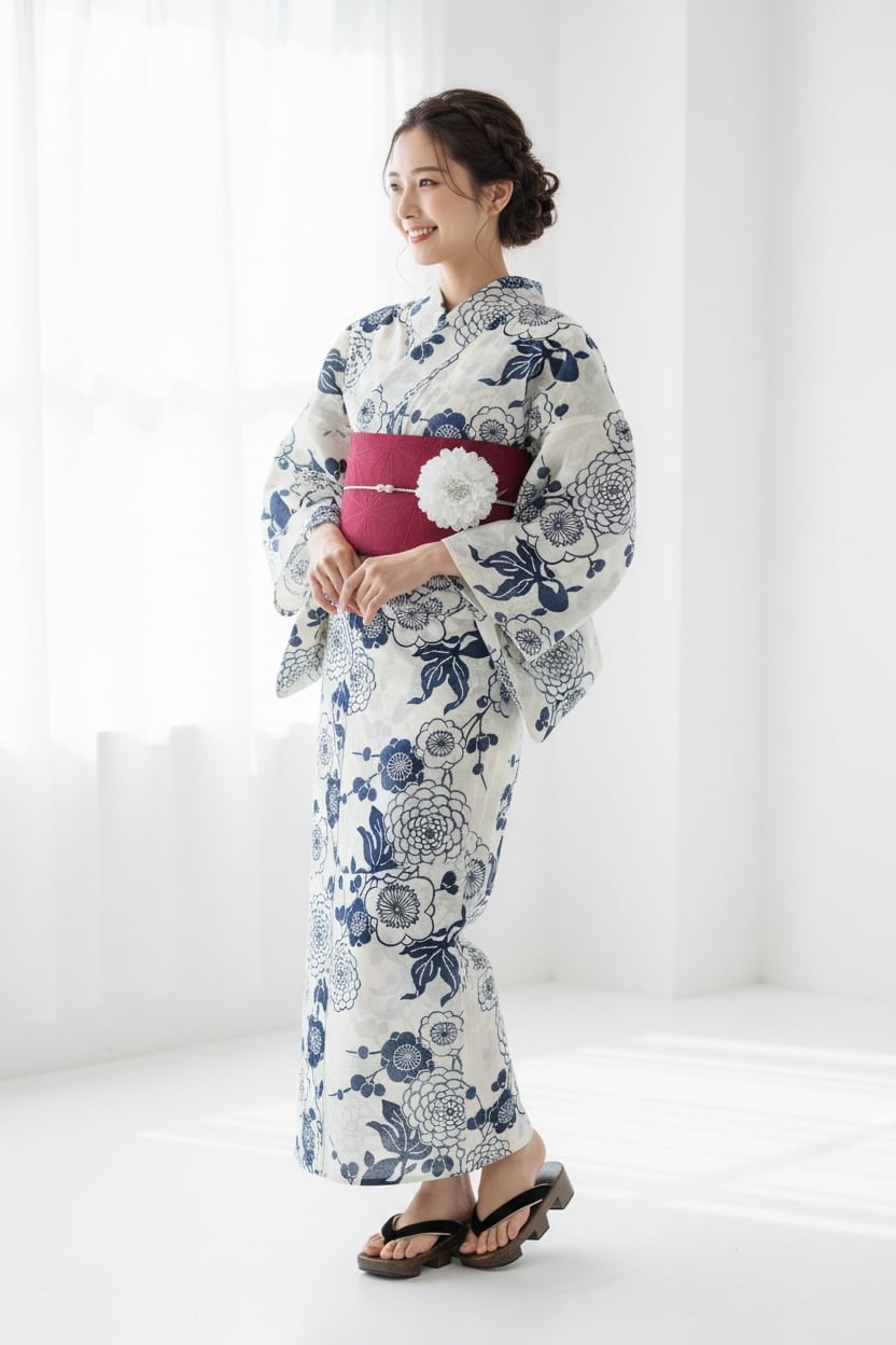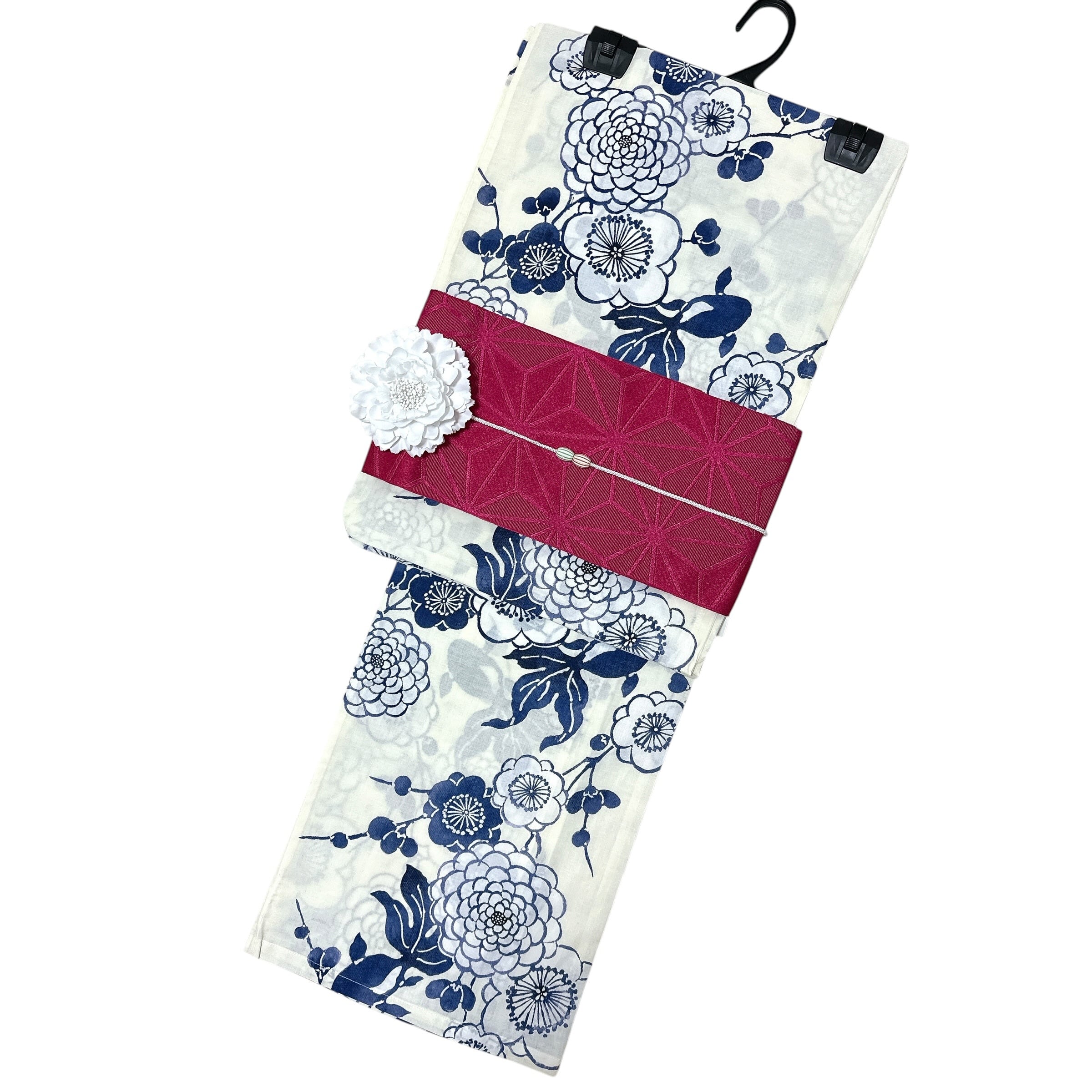 浴衣・半幅帯・下駄・帯締め・コサージュの5点セット