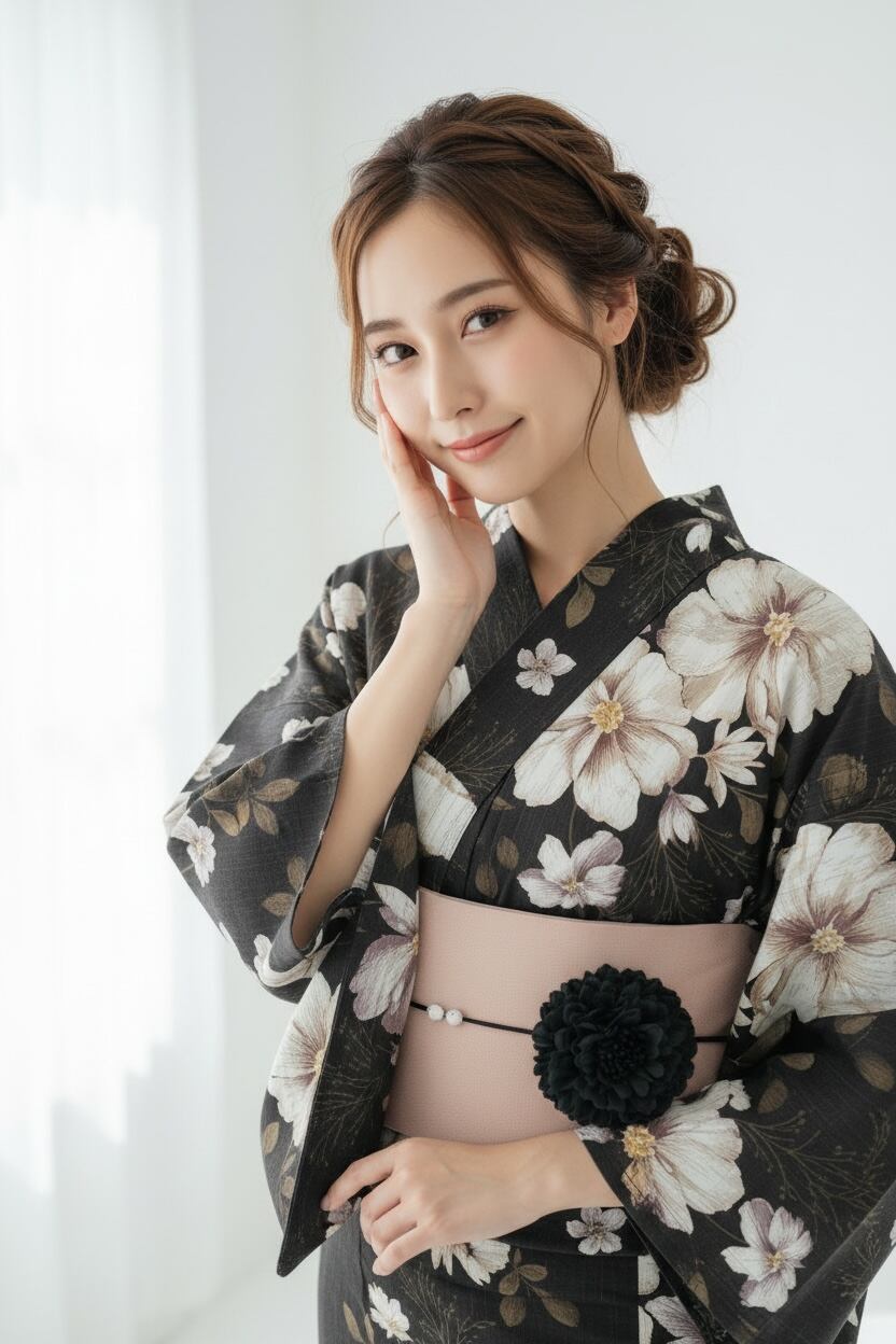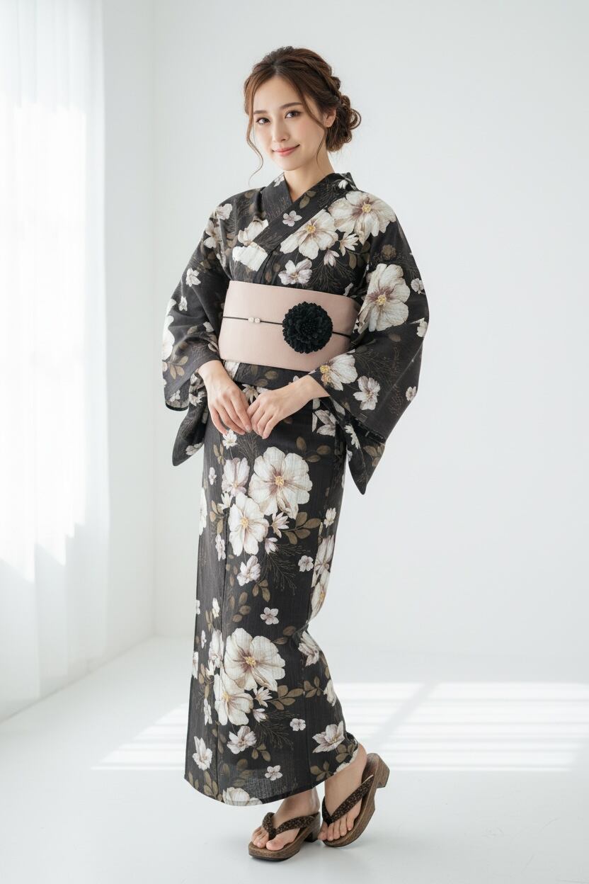 浴衣・半幅帯・下駄・帯締め・コサージュ