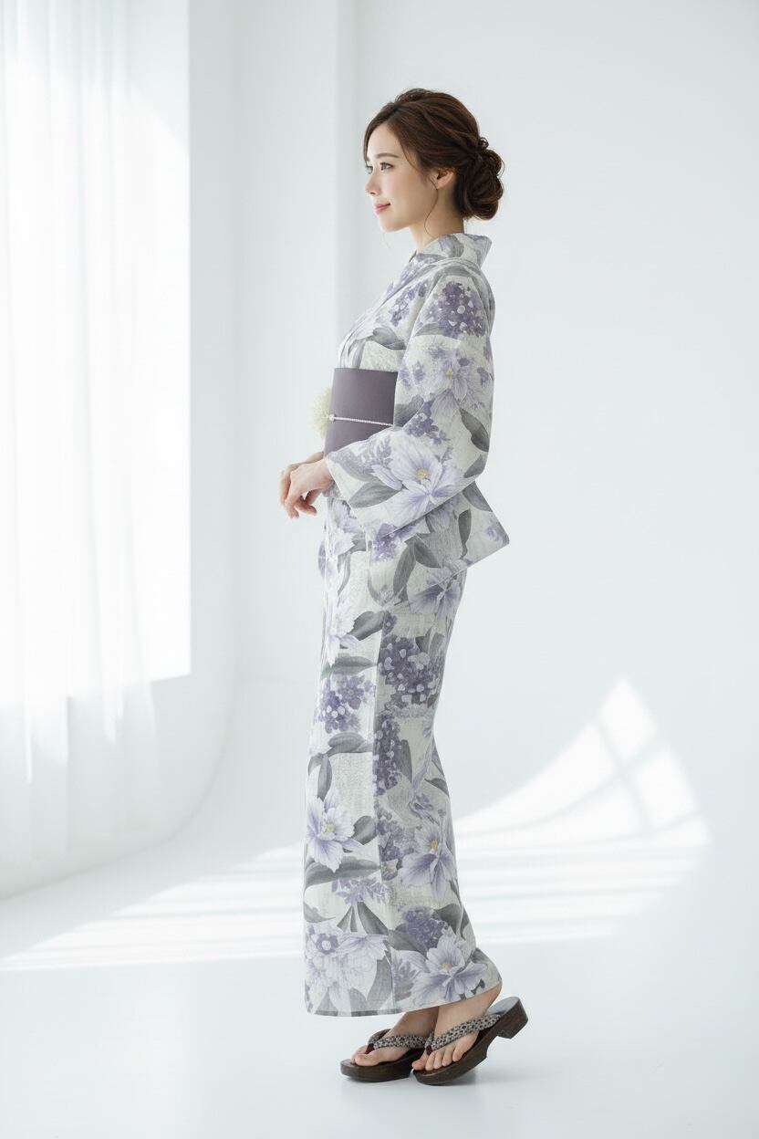 浴衣・半幅帯・下駄・帯締め・コサージュ