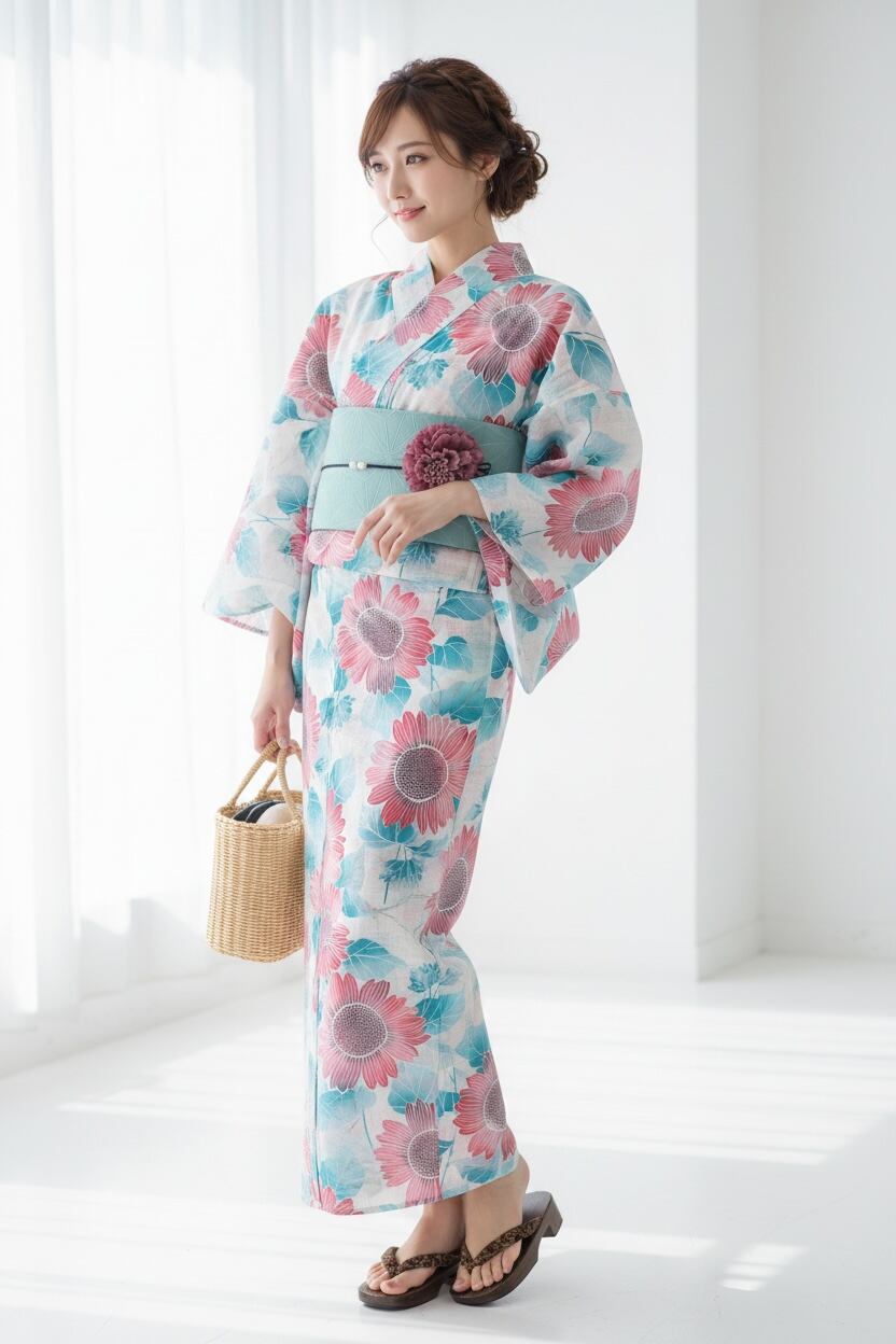 浴衣・半幅帯・下駄・帯締め・コサージュ