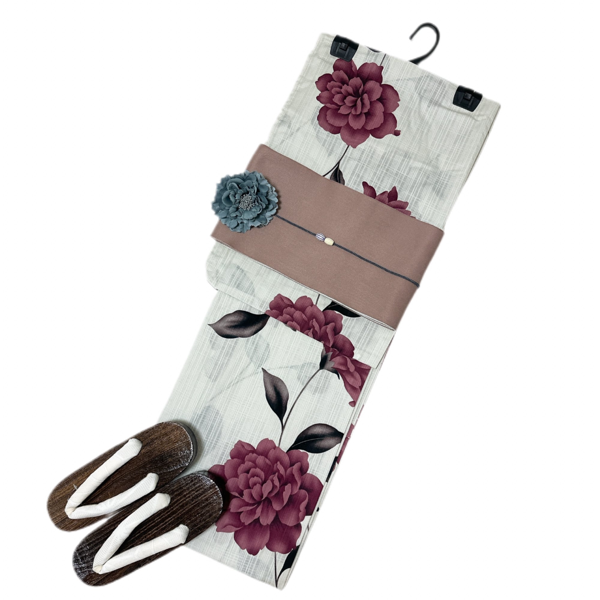 浴衣・半幅帯・下駄・帯飾り・コサージュ