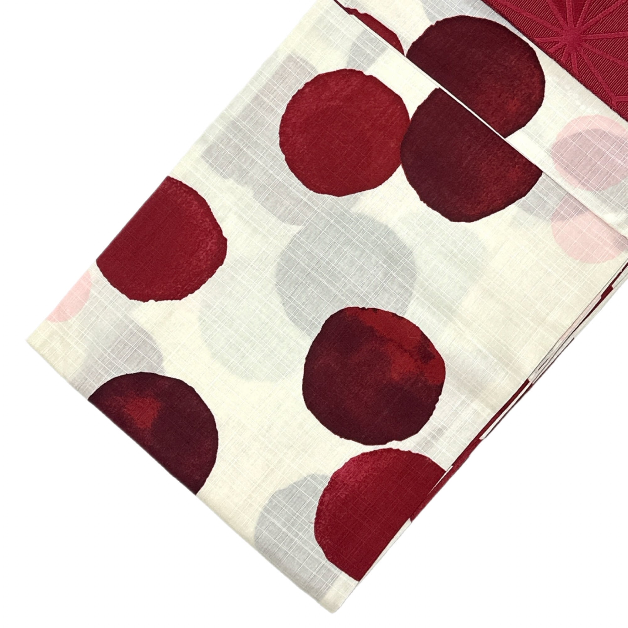 浴衣ジェンヌ 浴衣5点セット 生成りに赤と淡いピンクのぼかしドット柄