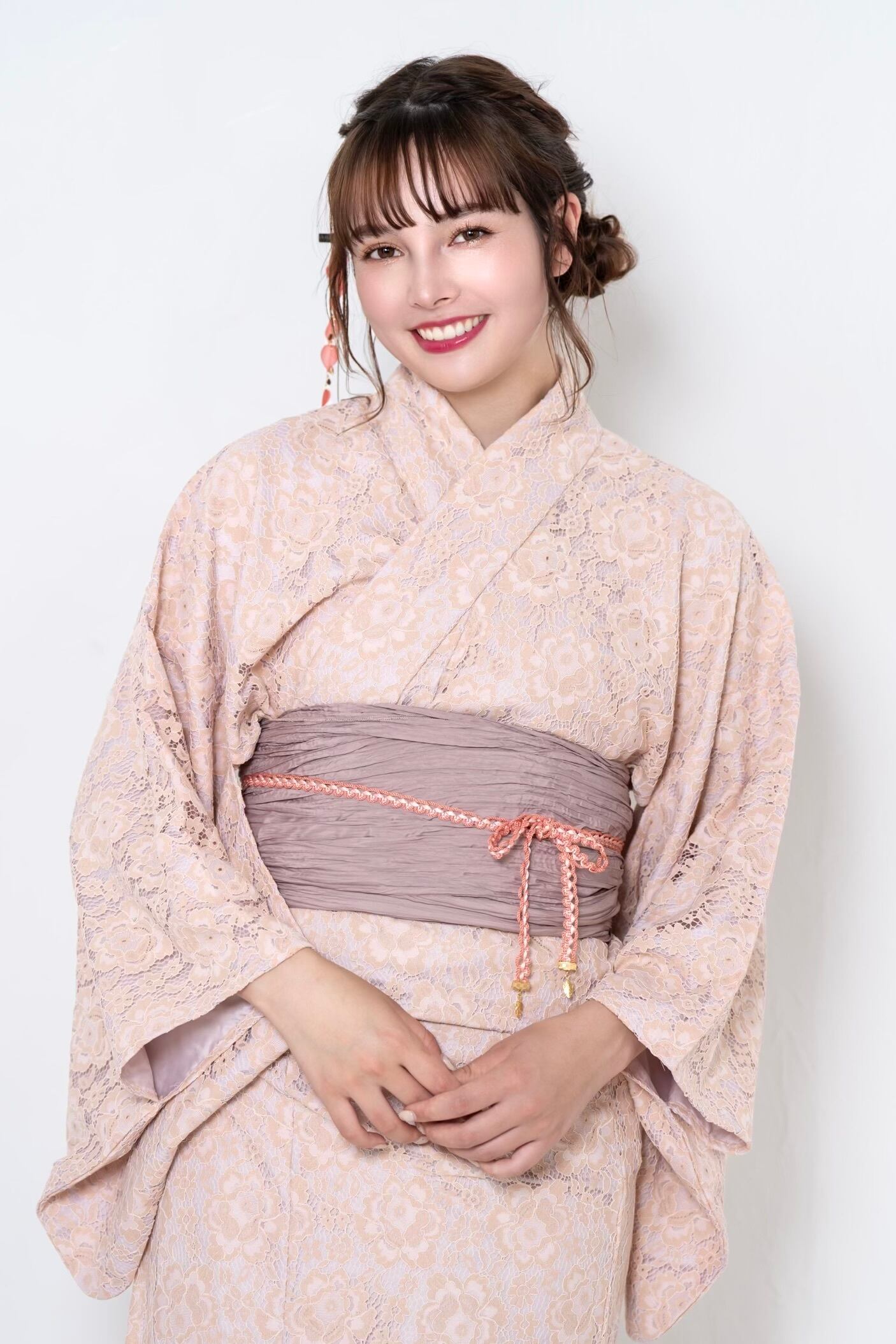 浴衣ジェンヌ 浴衣3点セット 高級 総レース浴衣 オレンジピンク 兵児帯Ver.