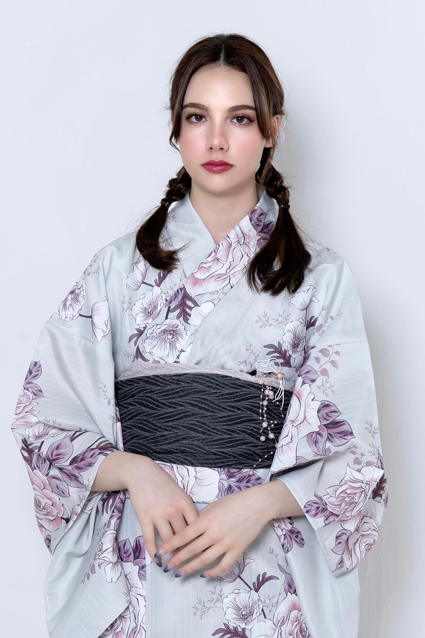 浴衣ジェンヌ 浴衣3点セット ライトグレー シフォン兵児帯 くすみカラー ゆかた