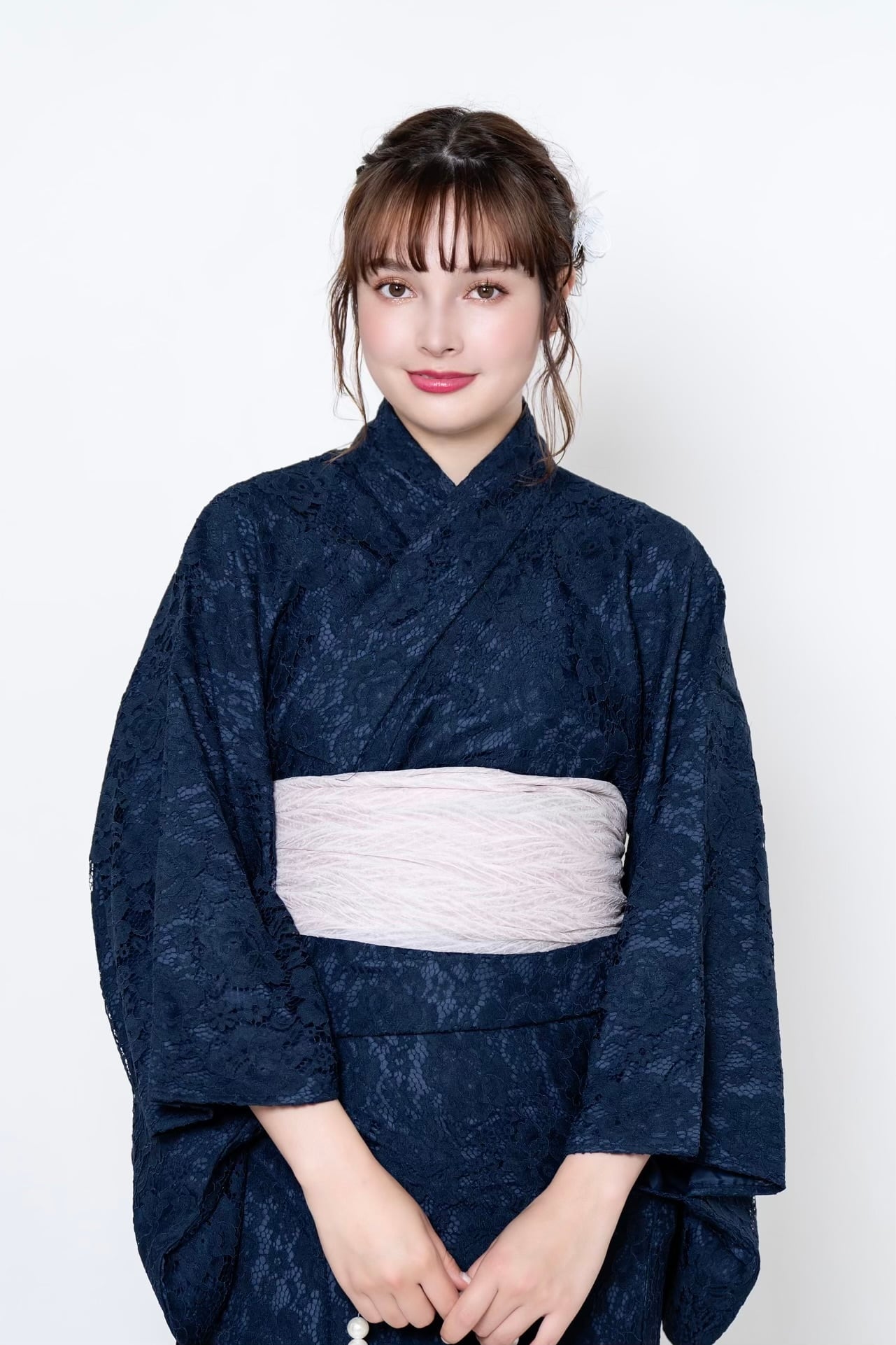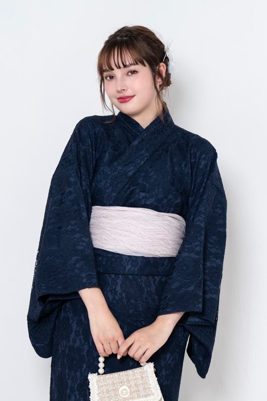 浴衣ジェンヌ 浴衣3点セット 高級 総レース浴衣 紺 ネイビー 兵児帯Ver.