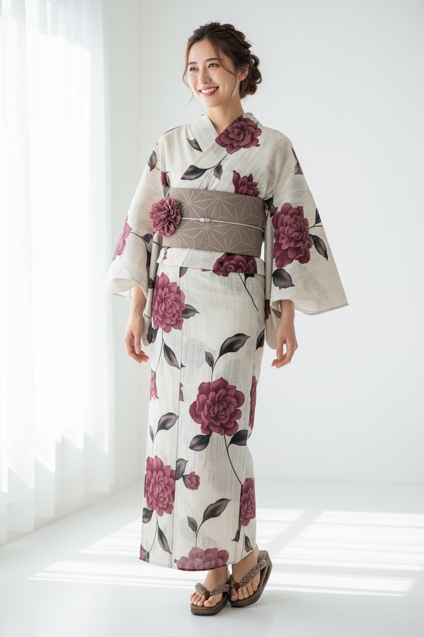 浴衣・半幅帯・下駄・帯飾り・コサージュ