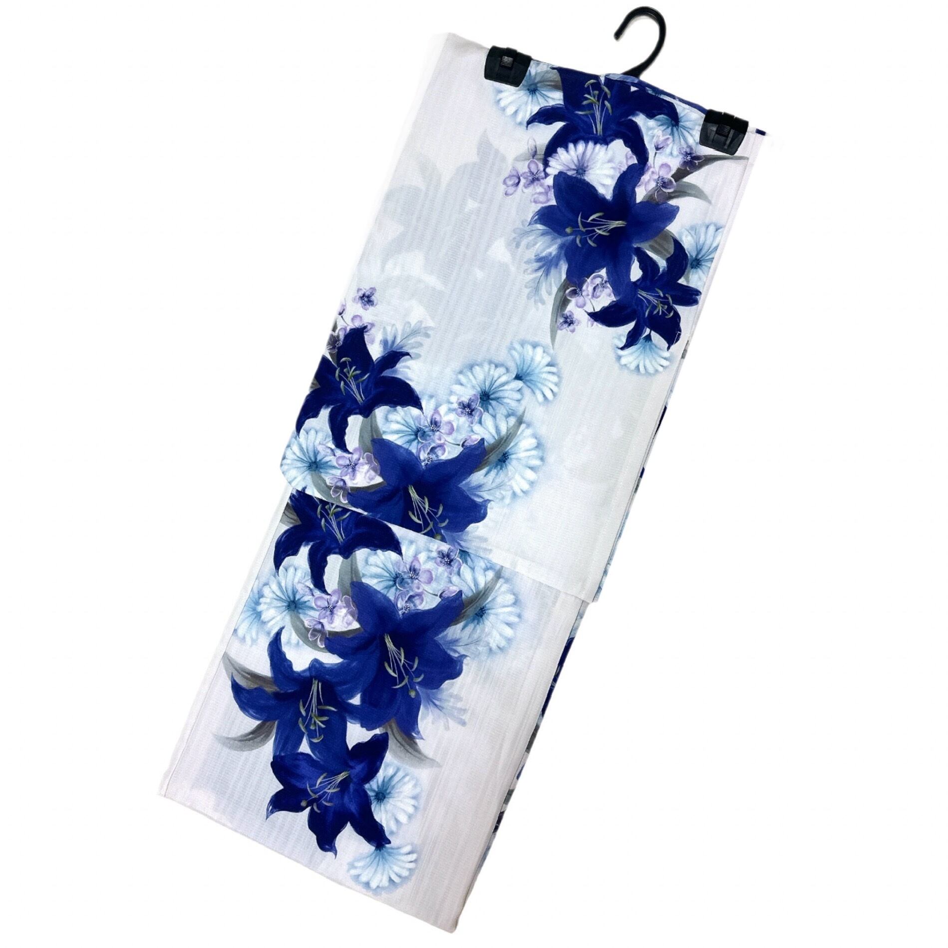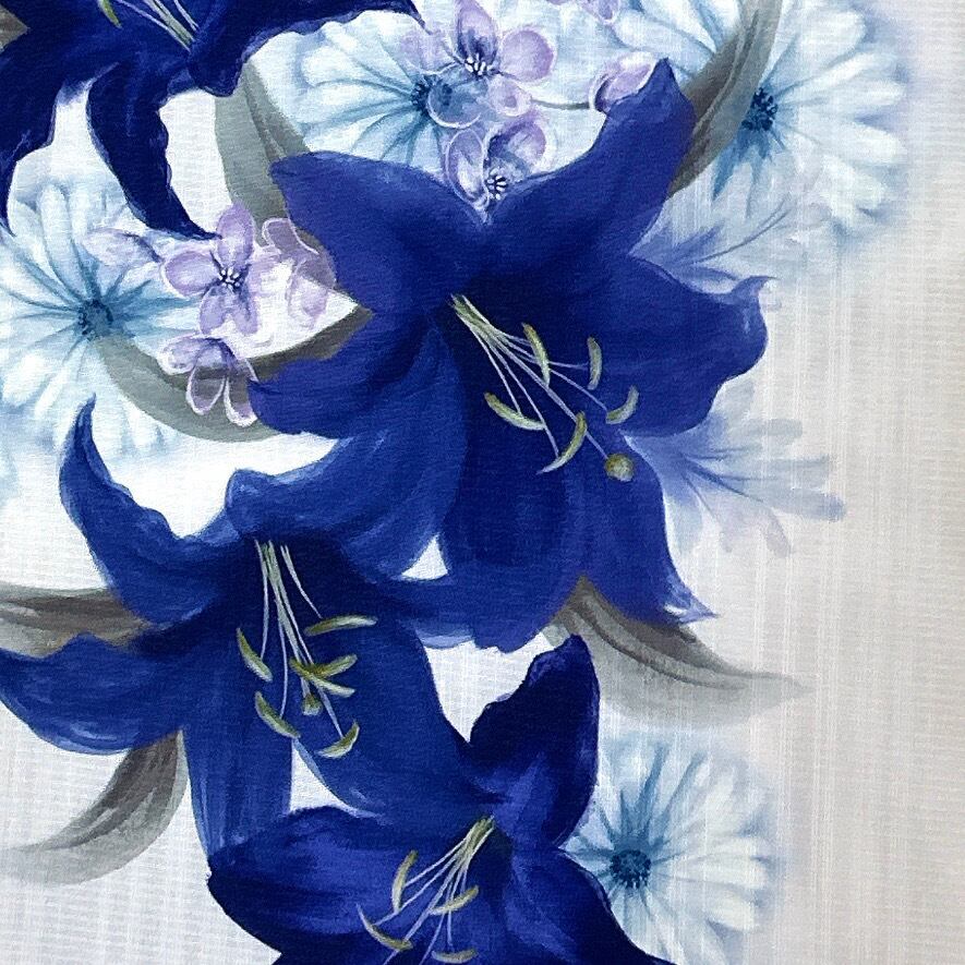 浴衣ジェンヌ 浴衣5点セット 高品質 紺の百合 水彩画調 浴衣 半幅帯