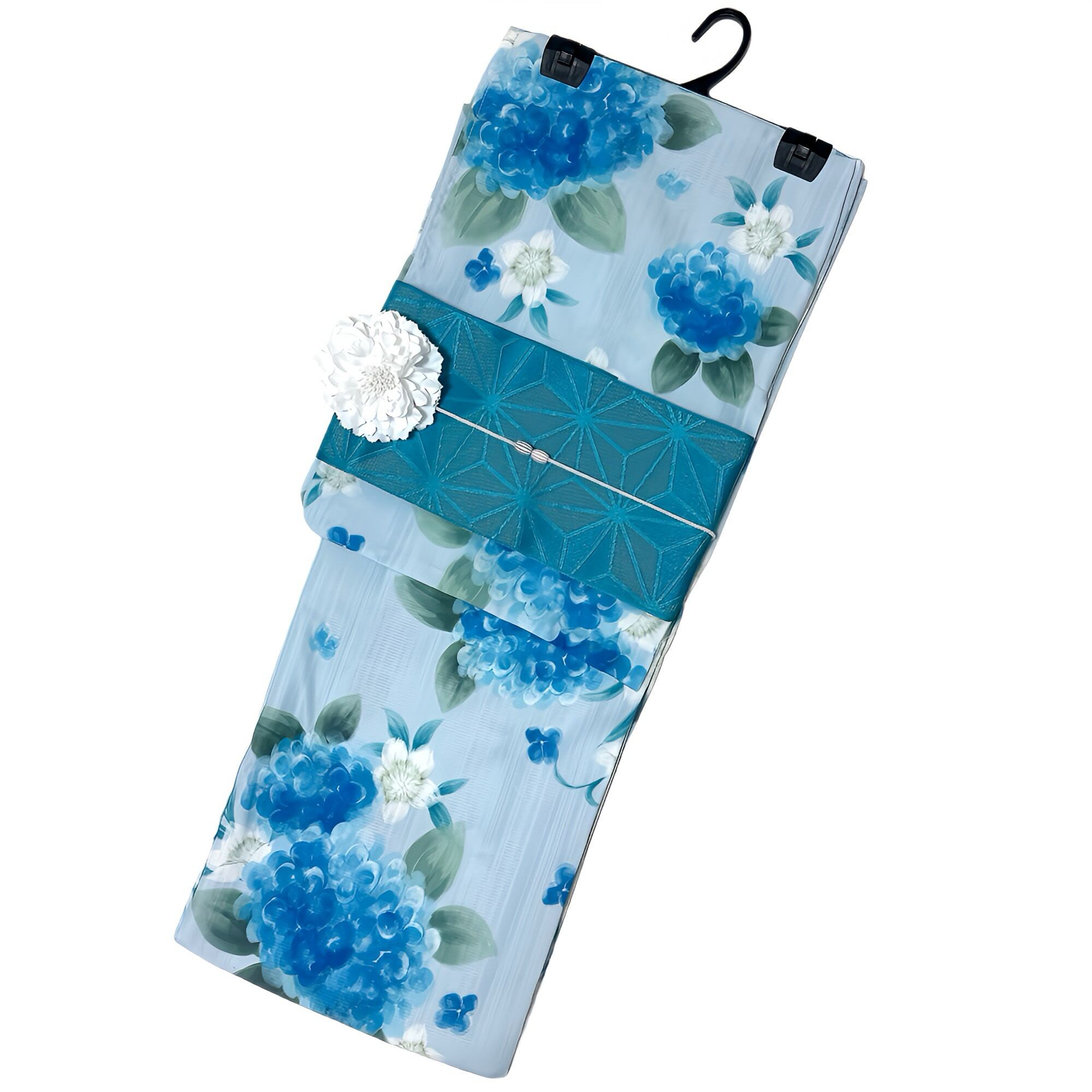 浴衣ジェンヌ 浴衣5点セット 水彩画調の紫陽花や菖蒲 ライトブルー 半幅帯