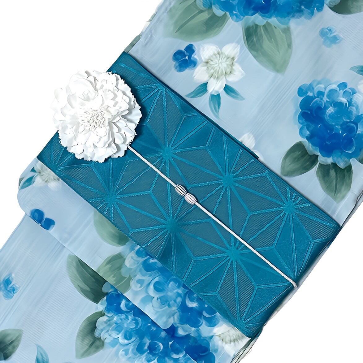 ■帯/半幅帯(麻の葉/ターコイズブルー)