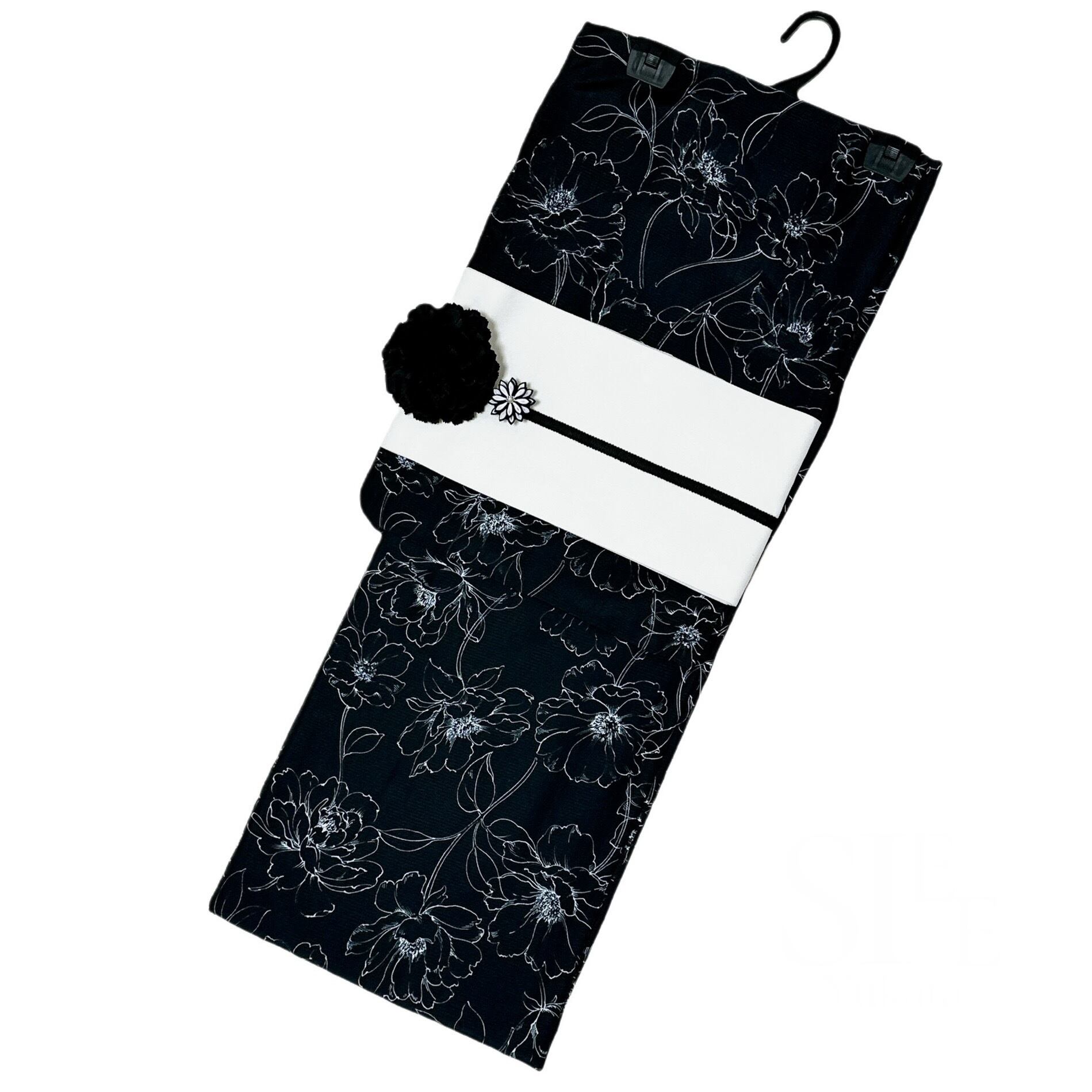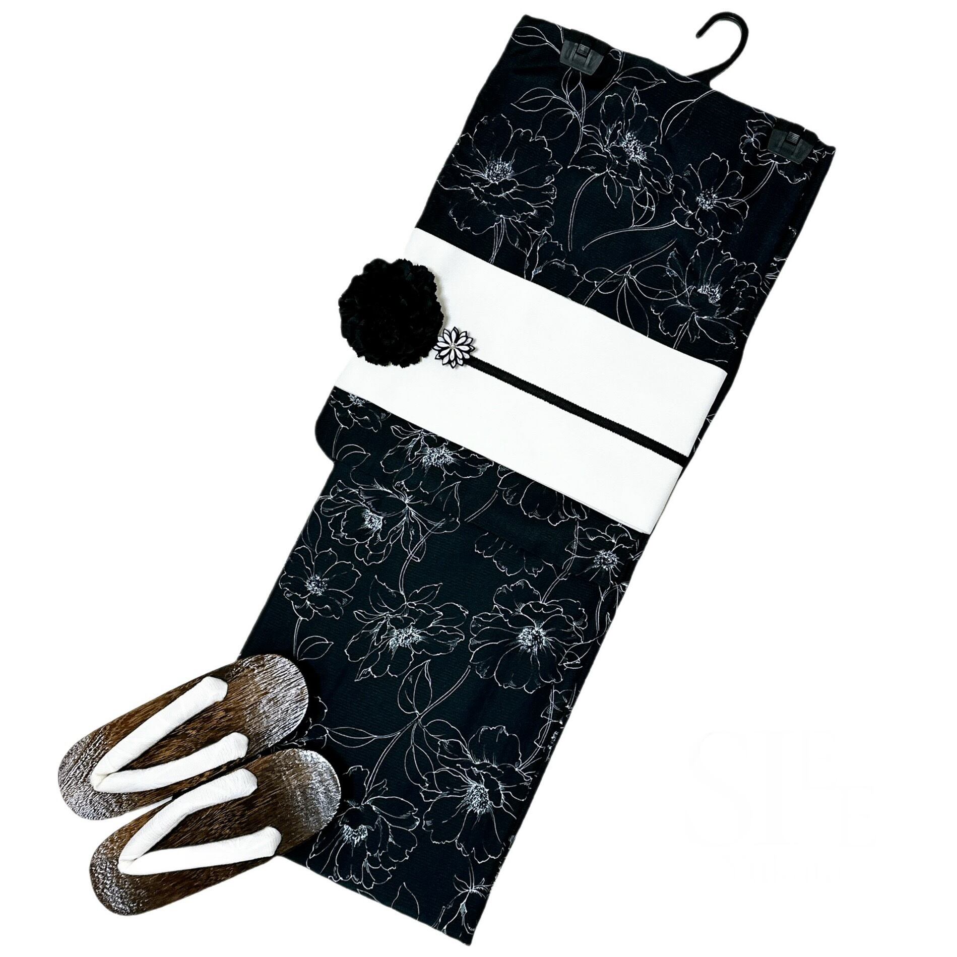 浴衣ジェンヌ 浴衣5点セット ポリエステル ゆかた 黒 ブラック 半幅帯 浴衣