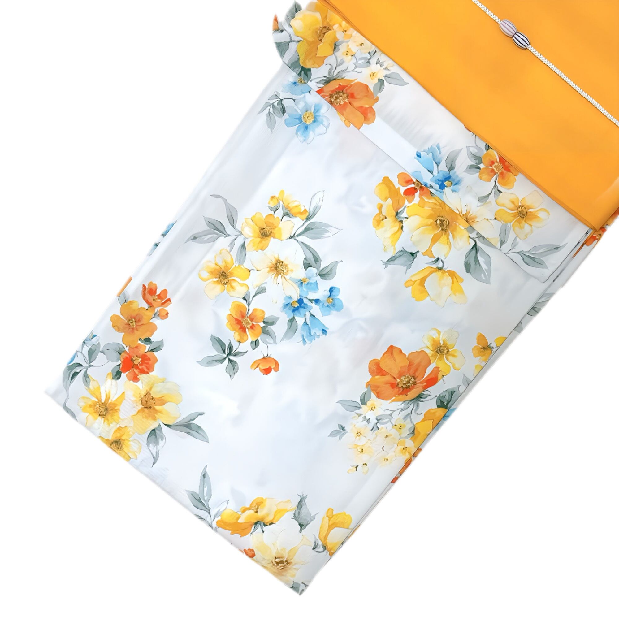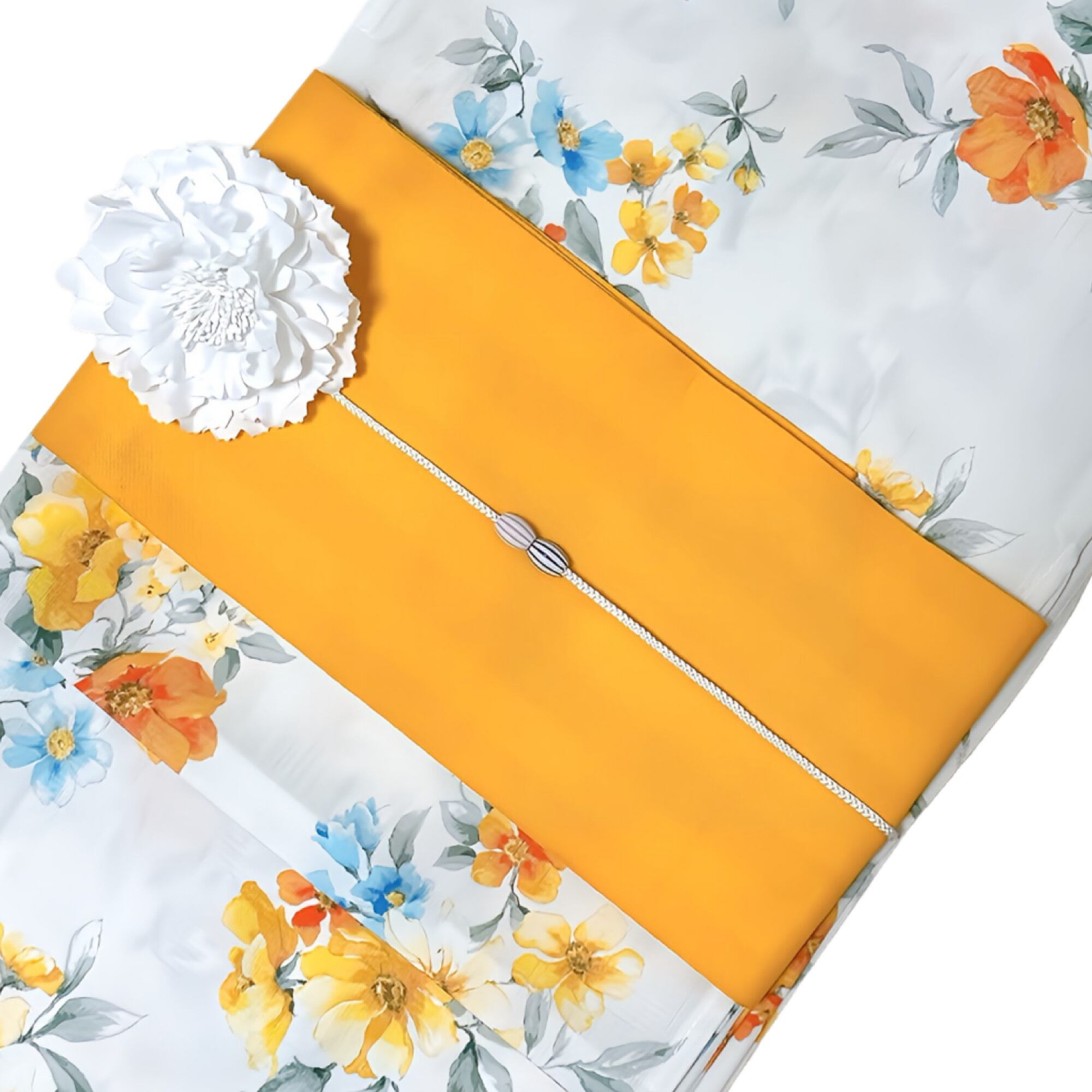 浴衣ジェンヌ 浴衣5点セット 白地 黄色 オレンジ ゆかた 半幅帯 浴衣