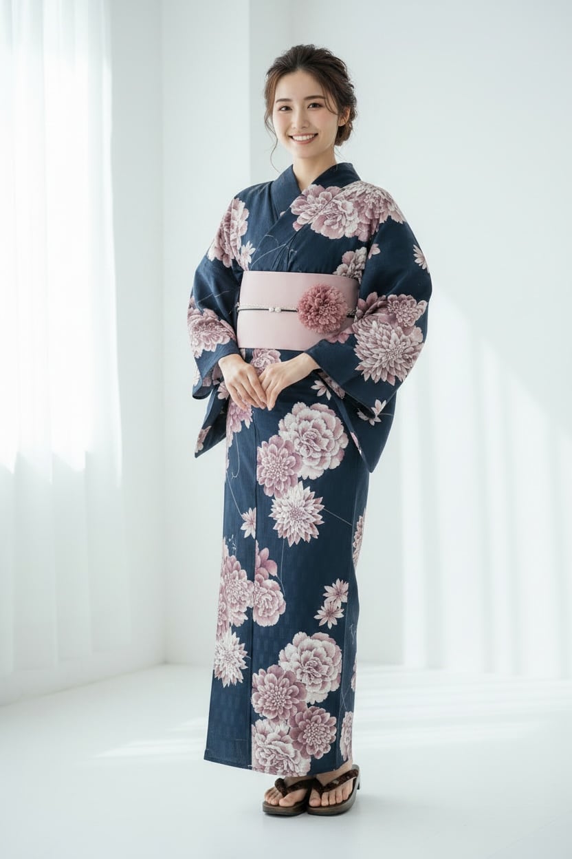 浴衣・半幅帯・下駄・帯締め・コサージュ