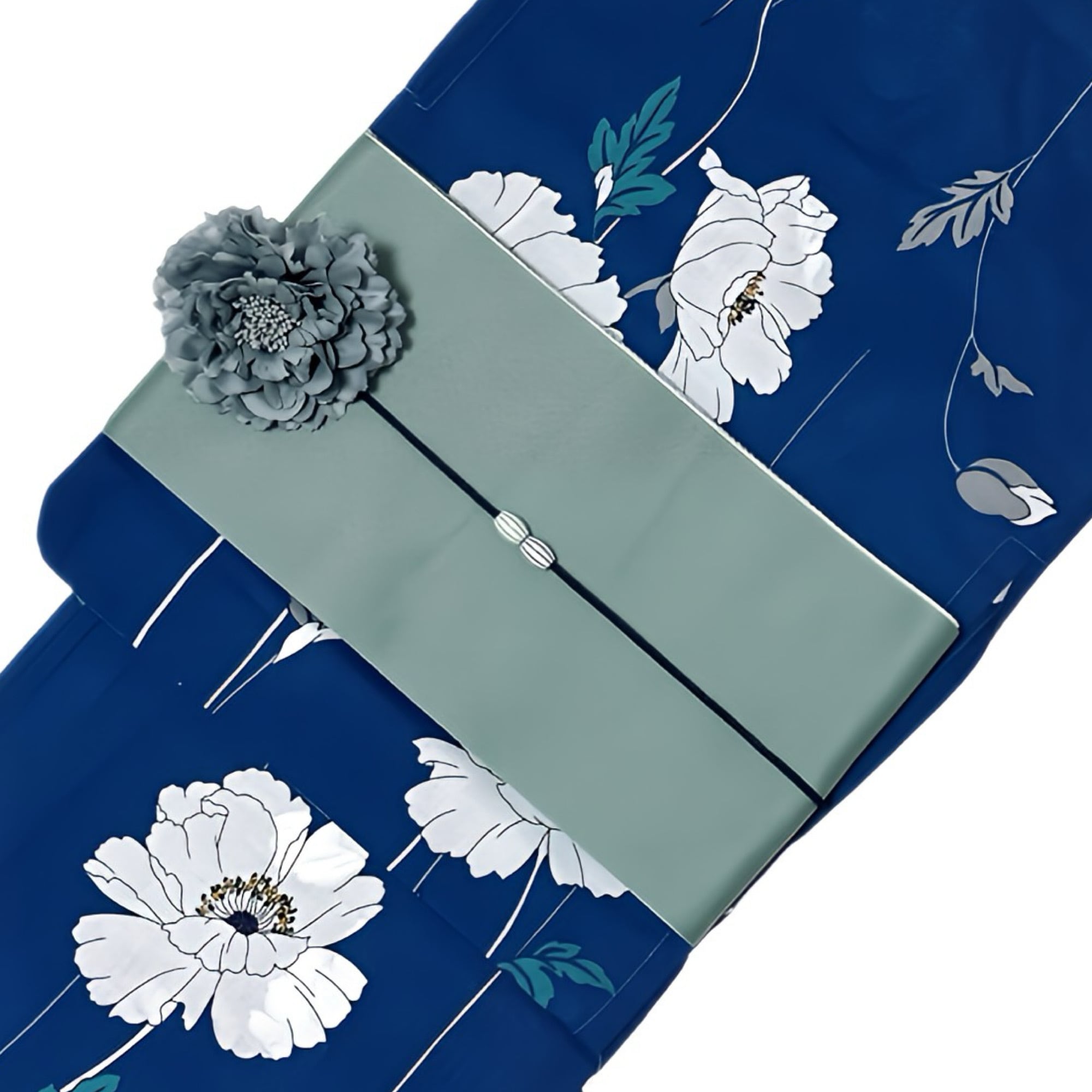 浴衣ジェンヌ 浴衣5点セット 鉄紺色 ポピー 花柄 綿 ゆかた 半幅帯 浴衣