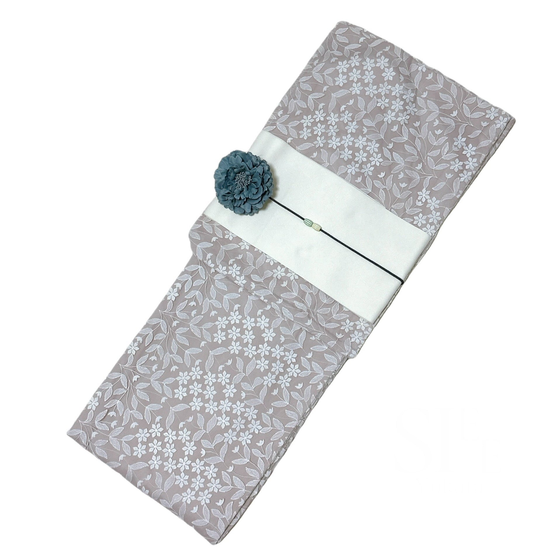 くすみピンクに白刺繍レースのフェミニンな浴衣です。
