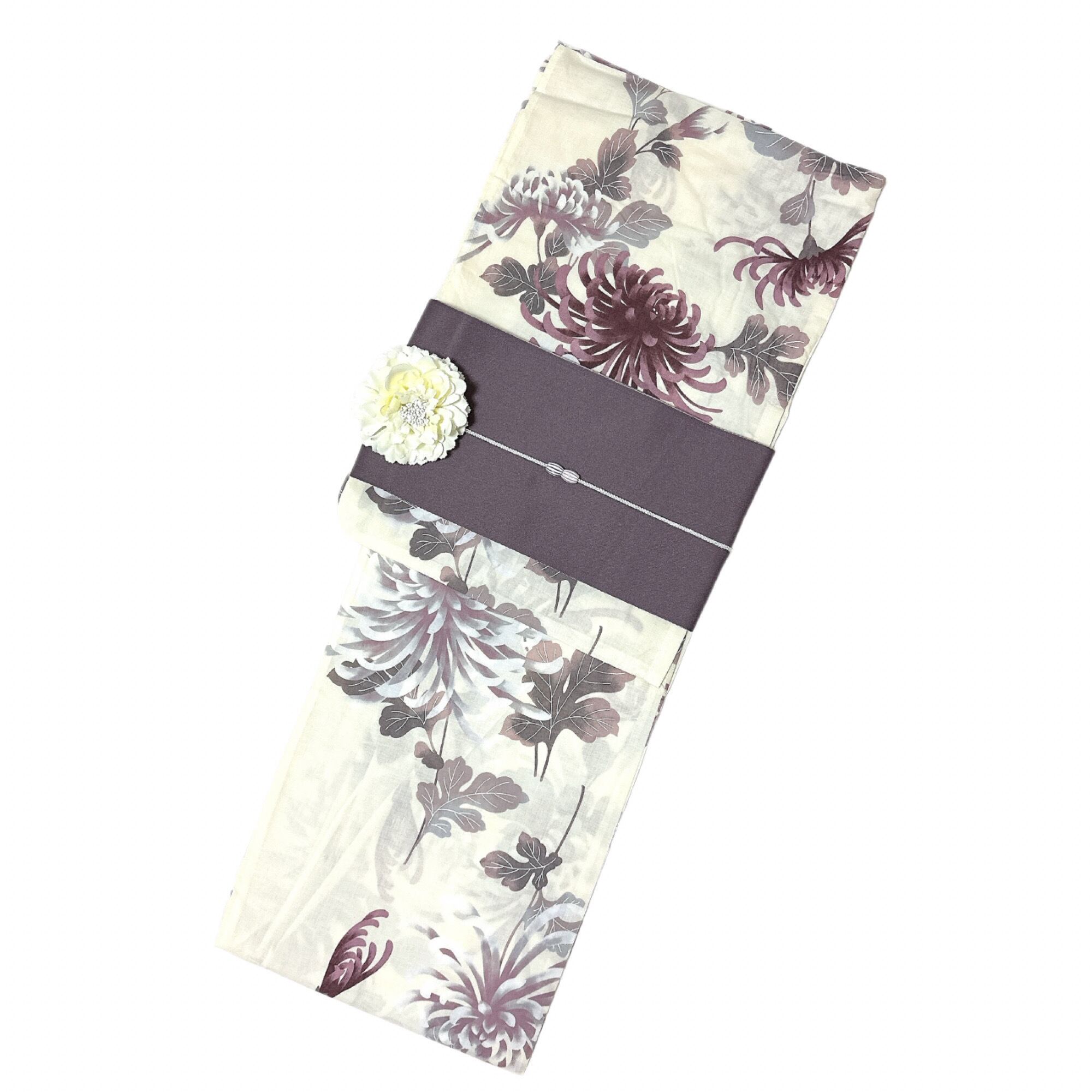 浴衣ジェンヌ 浴衣5点セット アイボリーに乱菊 くすみカラー 綿 ゆかた 半幅帯 浴衣