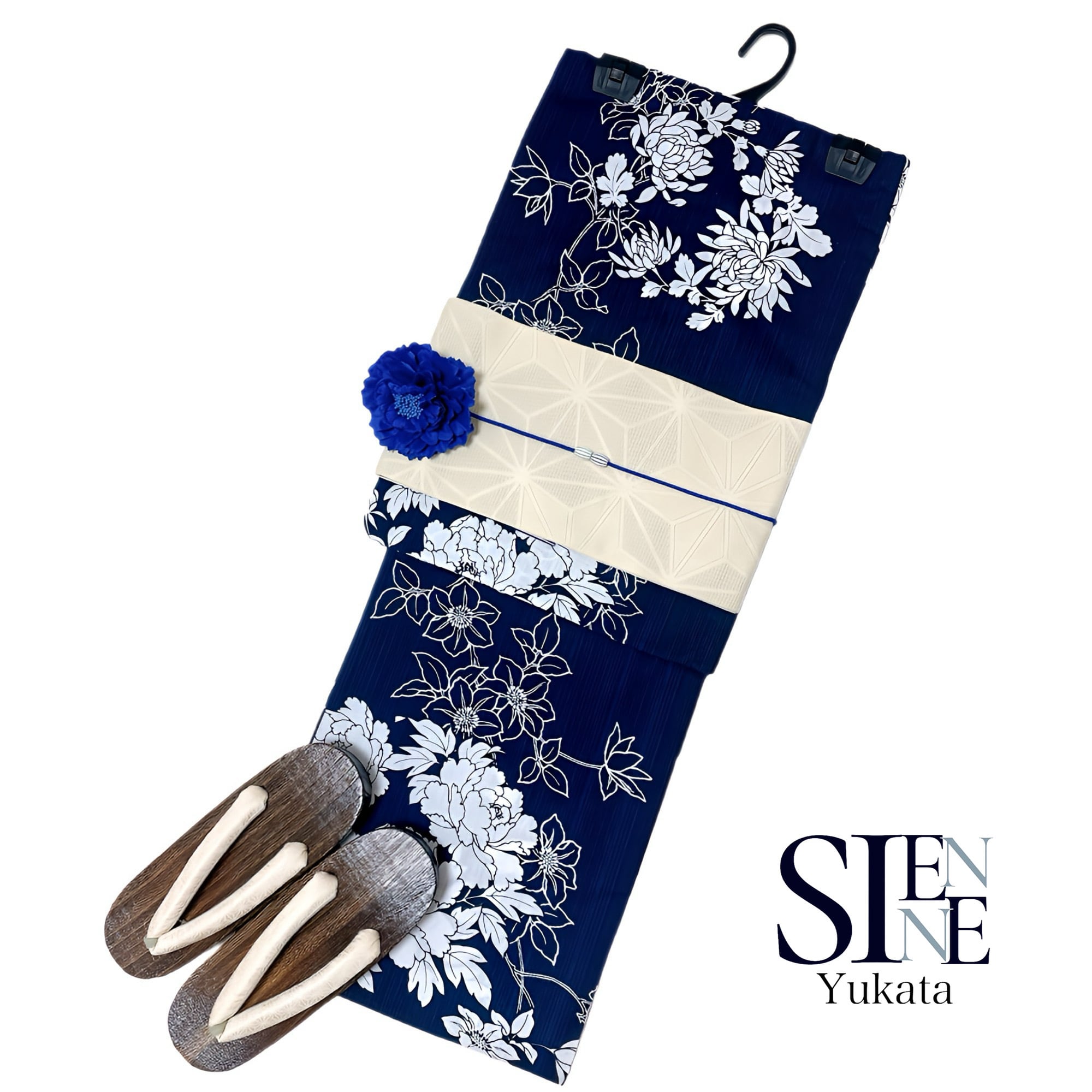浴衣ジェンヌ 浴衣5点セット 紺地に白 綿 ゆかた 半幅帯 浴衣